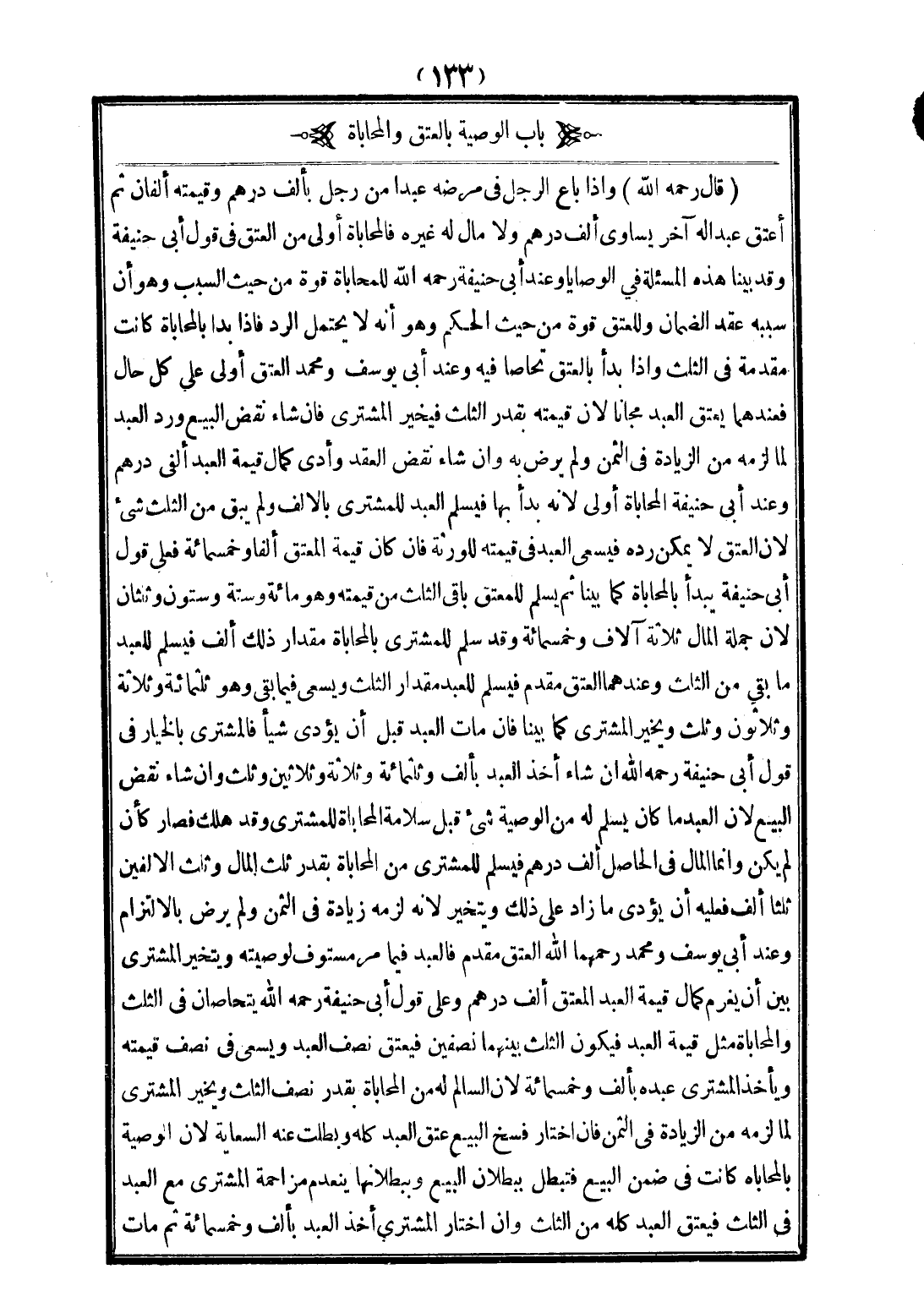 [بَابُ الْوَصِيَّةِ بِالْعِتْقِ وَالْمُحَابَاةِ]