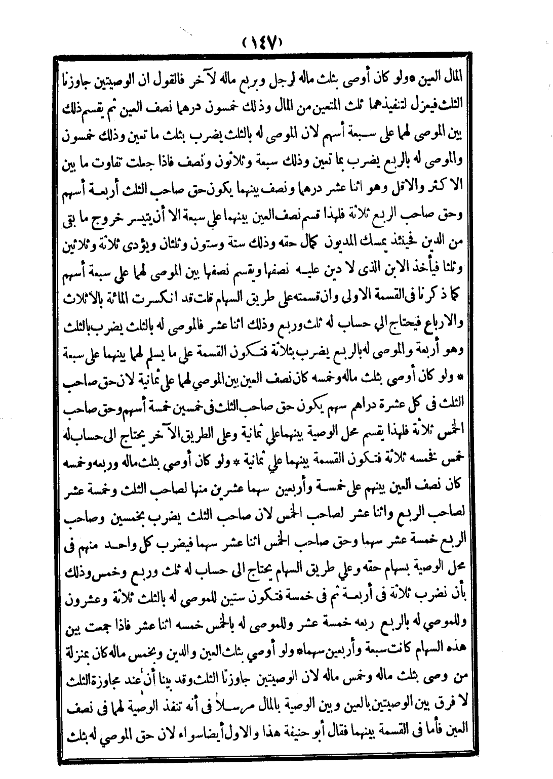 وَإِنْ قَسَمْته عَلَى طَرِيقِ السِّهَامِ قُلْت قَدْ انْكَسَرَتْ الْمِائَةُ بِالْأَثْلَاثِ وَالْأَرْبَاعِ فَيَحْتَاجُ إلَى حِسَابٍ لَهُ ثُلُثٌ وَرُبْعٌ، وَذَلِكَ اثْنَا عَشَرَ فَالْمُوصَى لَهُ بِالثُّلُثِ يَضْرِبُ بِالثُّلُثِ، وَهُوَ أَرْبَعَةٌ وَالْمُوصَى لَهُ بِالرُّبْعِ يَضْرِبُ بِثَلَاثَةِ فَتَكُونُ الْقِسْمَةُ عَلَى مَا يُسْلَمُ لَهُمَا بَيْنَهُمَا عَلَى سَبْعَةٍ.