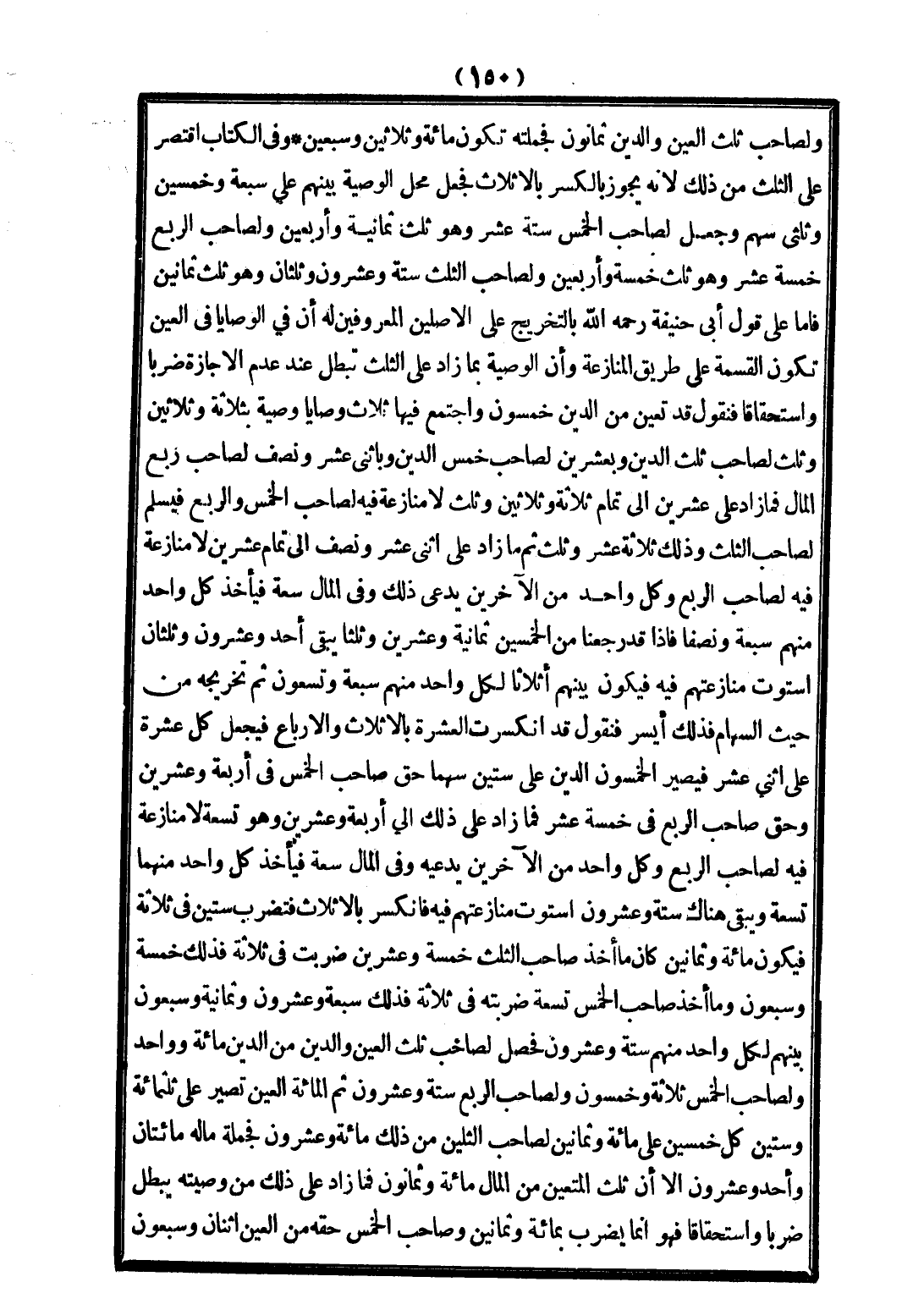 وَلِصَاحِبِ ثُلُثِ الْعَيْنِ وَالدَّيْنِ ثَمَانُونَ فَجُمْلَتُهُ تَكُونُ مِائَةً وَثَلَاثِينَ وَسَبْعِينَ وَفِي الْكِتَابِ اقْتَصَرَ عَلَى الثُّلُثِ مِنْ ذَلِكَ لِأَنَّهُ يَجُوزُ بِالْكَسْرِ بِالْأَثْلَاثِ فَجَعَلَ مَحَلَّ الْوَصِيَّةِ بَيْنَهُمْ عَلَى سَبْعَةٍ وَخَمْسِينَ وَثُلُثَيْ سَهْمٍ، وَجَعَلَ لِصَاحِبِ الْخُمُسِ سِتَّةَ عَشَرَ، وَهُوَ ثُلُثُ ثَمَانِيَةٍ وَأَرْبَعِينَ، وَلِصَاحِبِ الرُّبْعِ خَمْسَةَ عَشَرَ، وَهُوَ ثُلُثُ خَمْسَةٍ وَأَرْبَعِينَ، وَلِصَاحِبِ الثُّلُثِ سِتَّةٌ وَعِشْرُونَ وَثُلُثَانِ، وَهُوَ ثُلُثُ ثَمَانِينَ.