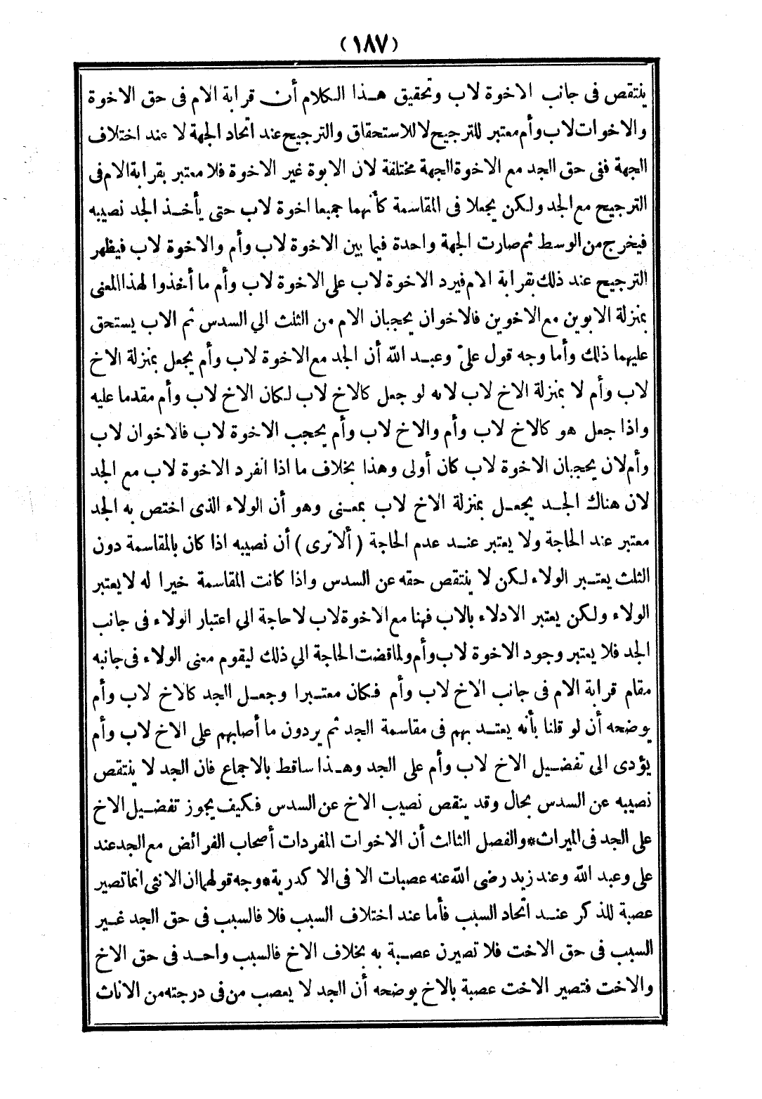 (أَلَا تَرَى) أَنَّ نَصِيبَهُ إذَا كَانَ بِالْمُقَاسَمَةِ دُونَ الثُّلُثِ يُعْتَبَرُ الْوَلَاءُ لَكِنْ لَا يُنْتَقَصُ حَقُّهُ عَنْ السُّدُسِ.