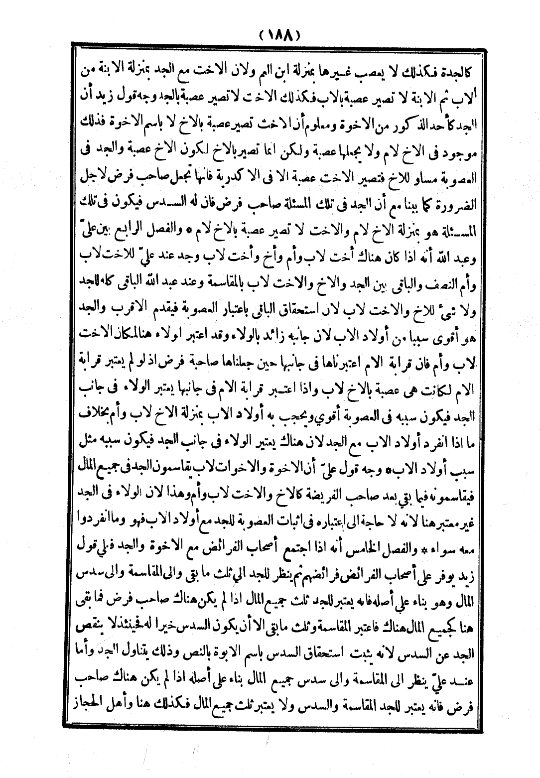 وَالْفَصْلُ الرَّابِعُ بَيْنَ عَلِيٍّ وَعَبْدِ اللَّهِ أَنَّهُ إذَا كَانَ هُنَاكَ أُخْتٌ لِأَبٍ وَأُمٍّ وَأَخٌ وَأُخْتٌ لِأَبٍ وَجَدٌّ عِنْدَ عَلِيٍّ لِلْأُخْتِ لِأَبٍ وَأُمٍّ النِّصْفُ وَالْبَاقِي بَيْنَ الْجَدِّ وَالْأَخِ وَالْأُخْتِ لِأَبٍ بِالْمُقَاسَمَةِ، وَعِنْدَ عَبْدِ اللَّهِ الْبَاقِي كُلُّهُ لِلْجَدِّ، وَلَا شَيْءَ لِلْأَخِ وَالْأُخْتِ لِأَبٍ لِأَنَّ اسْتِحْقَاقَ الْبَاقِي بِاعْتِبَارِ الْعُصُوبَةِ فَيُقَدَّمُ الْأَقْرَبُ وَالْجَدُّ هُوَ أَقْوَى سَبَبًا مِنْ أَوْلَادِ الْأَبِ لِأَنَّ جَانِبَهُ زَائِدٌ بِالْوَلَاءِ، وَقَدْ اُعْتُبِرَ الْوَلَاءُ هُنَا لِمَكَانِ الْأُخْتِ لِأَبٍ وَأُمٍّ فَإِنَّ قَرَابَةَ الْأُمِّ اعْتَبَرْنَاهَا فِي جَانِبِهَا حِينَ جَعَلْنَاهَا صَاحِبَةَ فَرْضٍ إذْ لَوْ لَمْ يَعْتَبِرْ قَرَابَةَ الْأُمِّ لَكَانَتْ هِيَ عَصَبَةً بِالْأَخِ لِأَبٍ وَإِذَا اعْتَبَرَ قَرَابَةَ الْأُمِّ فِي جَانِبِهَا يَعْتَبِرُ الْوَلَاءَ فِي جَانِبِ الْجَدِّ فَيَكُونُ سَبَبُهُ فِي الْعُصُوبَةِ أَقْوَى وَيُحْجَبُ بِهِ أَوْلَادُ الْأَبِ بِمَنْزِلَةِ الْأَخِ لِأَبٍ وَأُمٍّ بِخِلَافِ مَا إذَا انْفَرَدَ أَوْلَادُ الْأَبِ مَعَ الْجَدِّ لِأَنَّ هُنَاكَ يُعْتَبَرُ الْوَلَاءُ فِي جَانِبِ الْجَدِّ فَيَكُونُ سَبَبُهُ مِثْلَ سَبَبِ أَوْلَادِ الْأَبِ وَجْهُ قَوْلِ عَلِيٍّ أَنَّ الْإِخْوَةَ وَالْأَخَوَاتِ لِأَبٍ يُقَاسِمُونَ الْجَدَّ فِي جَمِيعِ الْمَالِ فَيُقَاسِمُونَهُ فِيمَا بَقِيَ بَعْدَ صَاحِبِ الْفَرِيضَةِ كَالْأَخِ وَالْأُخْتِ لِأَبٍ وَأُمٍّ وَهَذَا لِأَنَّ الْوَلَاءَ فِي الْجَدِّ غَيْرُ مُعْتَبَرٍ هُنَا لِأَنَّهُ لَا حَاجَةَ إلَى اعْتِبَارِهِ فِي إثْبَاتِ الْعُصُوبَةِ لِلْجَدِّ مَعَ أَوْلَادِ الْأَبِ فَهُوَ، وَمَا انْفَرَدُوا مَعَهُ سَوَاءٌ.