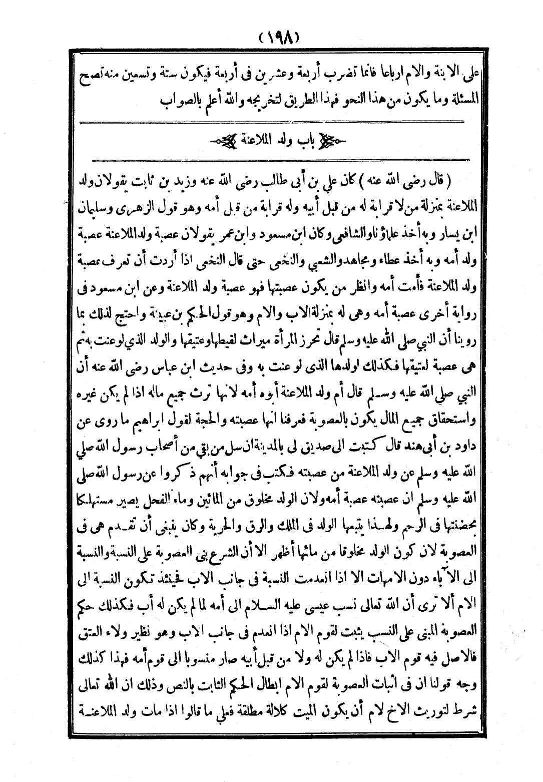 (قَالَ - رَضِيَ اللَّهُ عَنْهُ -) كَانَ عَلِيُّ بْنُ أَبِي طَالِبٍ - رَضِيَ اللَّهُ عَنْهُ - وَزَيْدُ بْنُ ثَابِتٍ يَقُولَانِ وَلَدُ الْمُلَاعَنَةِ بِمَنْزِلَةِ مَنْ لَا قَرَابَةَ لَهُ مِنْ قِبَلِ أَبِيهِ وَلَهُ قَرَابَةٌ مِنْ قِبَلِ أُمِّهِ وَهُوَ قَوْلُ الزُّهْرِيِّ وَسُلَيْمَانَ بْنِ يَسَارٍ وَبِهِ أَخَذَ عُلَمَاؤُنَا وَالشَّافِعِيُّ وَكَانَ ابْنُ مَسْعُودٍ وَابْنُ عُمَرَ يَقُولَانِ عَصَبَةُ وَلَدِ الْمُلَاعَنَةِ عَصَبَةُ وَلَدِ أُمِّهِ وَبِهِ أَخَذَ عَطَاءٌ وَمُجَاهِدٌ وَالشَّعْبِيُّ وَالنَّخَعِيُّ حَتَّى قَالَ النَّخَعِيُّ إذَا أَرَدْت أَنْ تَعْرِفَ عَصَبَةَ وَلَدِ الْمُلَاعَنَةِ فَأَمِتْ أُمَّهُ وَانْظُرْ مَنْ يَكُونُ عَصَبَتُهَا فَهُوَ عَصَبَةُ وَلَدِ الْمُلَاعَنَةِ وَعَنْ ابْنِ مَسْعُودٍ فِي رِوَايَةٍ أُخْرَى عَصَبَةُ أُمِّهِ وَهِيَ لَهُ بِمَنْزِلَةِ الْأَبِ وَالْأُمِّ وَهُوَ قَوْلُ الْحَكَمِ بْنِ عُيَيْنَةَ وَاحْتَجَّ لِذَلِكَ بِمَا رَوَيْنَا أَنَّ النَّبِيَّ - صَلَّى اللَّهُ عَلَيْهِ وَسَلَّمَ - قَالَ «تُحْرِزُ الْمَرْأَةُ مِيرَاثَ لَقِيطِهَا وَعَتِيقِهَا وَالْوَلَدُ الَّذِي لُوعِنَتْ بِهِ»، ثُمَّ هِيَ عَصَبَةٌ لِعَتِيقِهَا. فَكَذَلِكَ لِوَلَدِهَا الَّذِي لُوعِنَتْ بِهِ، وَفِي حَدِيثِ ابْنِ عَبَّاسٍ - رَضِيَ اللَّهُ عَنْهُ - أَنَّ النَّبِيَّ - صَلَّى اللَّهُ عَلَيْهِ وَسَلَّمَ - قَالَ «أُمُّ وَلَدِ الْمُلَاعَنَةِ أَبُوهُ أُمُّهُ» لِأَنَّهَا تَرِثُ جَمِيعَ مَالِهِ إذَا لَمْ يَكُنْ غَيْرُهُ وَاسْتِحْقَاقُ جَمِيعِ الْمَالِ يَكُونُ بِالْعُصُوبَةِ فَعَرَفْنَا أَنَّهَا عَصَبَتُهُ وَالْحُجَّةُ لِقَوْلِ إبْرَاهِيمَ مَا رُوِيَ عَنْ دَاوُد بْنِ أَبِي هِنْدٍ قَالَ كَتَبْت إلَى صَدِيقٍ لِي بِالْمَدِينَةِ أَنْ «سَلْ مَنْ بَقِيَ مِنْ أَصْحَابِ رَسُولِ اللَّهِ - صَلَّى اللَّهُ عَلَيْهِ وَسَلَّمَ - عَنْ وَلَدِ الْمُلَاعَنَةِ مَنْ عَصَبَتُهُ فَكَتَبَ فِي جَوَابِهِ أَنَّهُمْ ذَكَرُوا عَنْ رَسُولِ اللَّهِ - صَلَّى اللَّهُ عَلَيْهِ وَسَلَّمَ - أَنَّ عَصَبَتَهُ عَصَبَةُ أُمِّهِ»، وَلِأَنَّ الْوَلَدَ مَخْلُوقٌ مِنْ الْمَائَيْنِ وَمَاءُ الْفَحْلِ يَصِيرُ مُسْتَهْلَكًا بِحَضَنَتِهَا فِي الرَّحِمِ وَلِهَذَا يَتْبَعُهَا الْوَلَدُ فِي الْمِلْكِ وَالرِّقِّ وَالْحُرِّيَّةِ وَكَانَ يَنْبَغِي أَنْ تَقَدُّمَ هِيَ فِي الْعُصُوبَةِ لِأَنَّ كَوْنَ الْوَلَدِ مَخْلُوقًا مِنْ مَائِهَا أَظْهَرُ إلَّا أَنَّ الشَّرْعَ بَنَى الْعُصُوبَةَ عَلَى النِّسْبَةِ وَالنِّسْبَةُ إلَى الْآبَاءِ دُونَ الْأُمَّهَاتِ إلَّا إذَا انْعَدَمَتْ النِّسْبَةُ فِي جَانِبِ الْأَبِ فَحِينَئِذٍ تَكُونُ النِّسْبَةُ إلَى الْأُمِّ أَلَا تَرَى أَنَّ اللَّهَ تَعَالَى نَسَبَ عِيسَى - عَلَيْهِ السَّلَامُ - إلَى أُمِّهِ لَمَّا لَمْ يَكُنْ لَهُ أَبٌ.