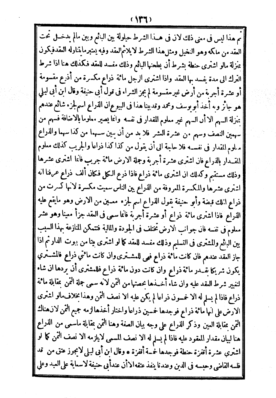 وَإِذَا اشْتَرَى الرَّجُلُ مِائَةَ ذِرَاعٍ مُكَسَّرَةٍ مِنْ أَذْرُعٍ مَقْسُومَةٍ أَوْ عَشَرَةَ أَجْرِبَةٍ مِنْ أَرْضٍ غَيْرِ مَقْسُومَةٍ لَمْ يَجُزْ الشِّرَاءُ فِي قَوْلِ أَبِي حَنِيفَةَ وَقَالَ ابْنُ أَبِي لَيْلَى هُوَ جَائِزٌ وَبِهِ أَخَذَ أَبُو يُوسُفَ وَمُحَمَّدٌ وَقَدْ بَيَّنَّا هَذَا فِي الْبُيُوعِ أَنَّ الذِّرَاعَ اسْمٌ لِجُزْءٍ شَائِعٍ عِنْدَهُمْ بِمَنْزِلَةِ السَّهْمِ إلَّا أَنَّ السَّهْمَ غَيْرُ مَعْلُومِ الْمِقْدَارِ فِي نَفْسِهِ وَإِنَّمَا يَصِيرُ مَعْلُومًا بِالْإِضَافَةِ فَسَهْمٌ مِنْ سَهْمَيْنِ النِّصْفُ وَسَهْمٌ مِنْ عَشَرَةٍ الْعُشْرُ فَلَا بُدَّ مِنْ أَنْ يُبَيِّنَ سَهْمًا مِنْ كَذَا سَهْمًا وَالذِّرَاعُ مَعْلُومُ الْمِقْدَارِ فِي نَفْسِهِ فَلَا حَاجَةَ إلَى أَنْ يَقُولَ مِنْ كَذَا كَذَا ذِرَاعًا وَالْجَرِيبُ كَذَلِكَ مَعْلُومُ الْمِقْدَارِ بِالذِّرَاعِ فَإِنْ اشْتَرَى عَشَرَةَ أَجْرِبَةٍ وَجُمْلَةُ الْأَرْضِ مِائَةُ جَرِيبٍ فَإِنَّمَا اشْتَرَى عُشْرَهَا وَذَلِكَ مُسْتَقِيمٌ.