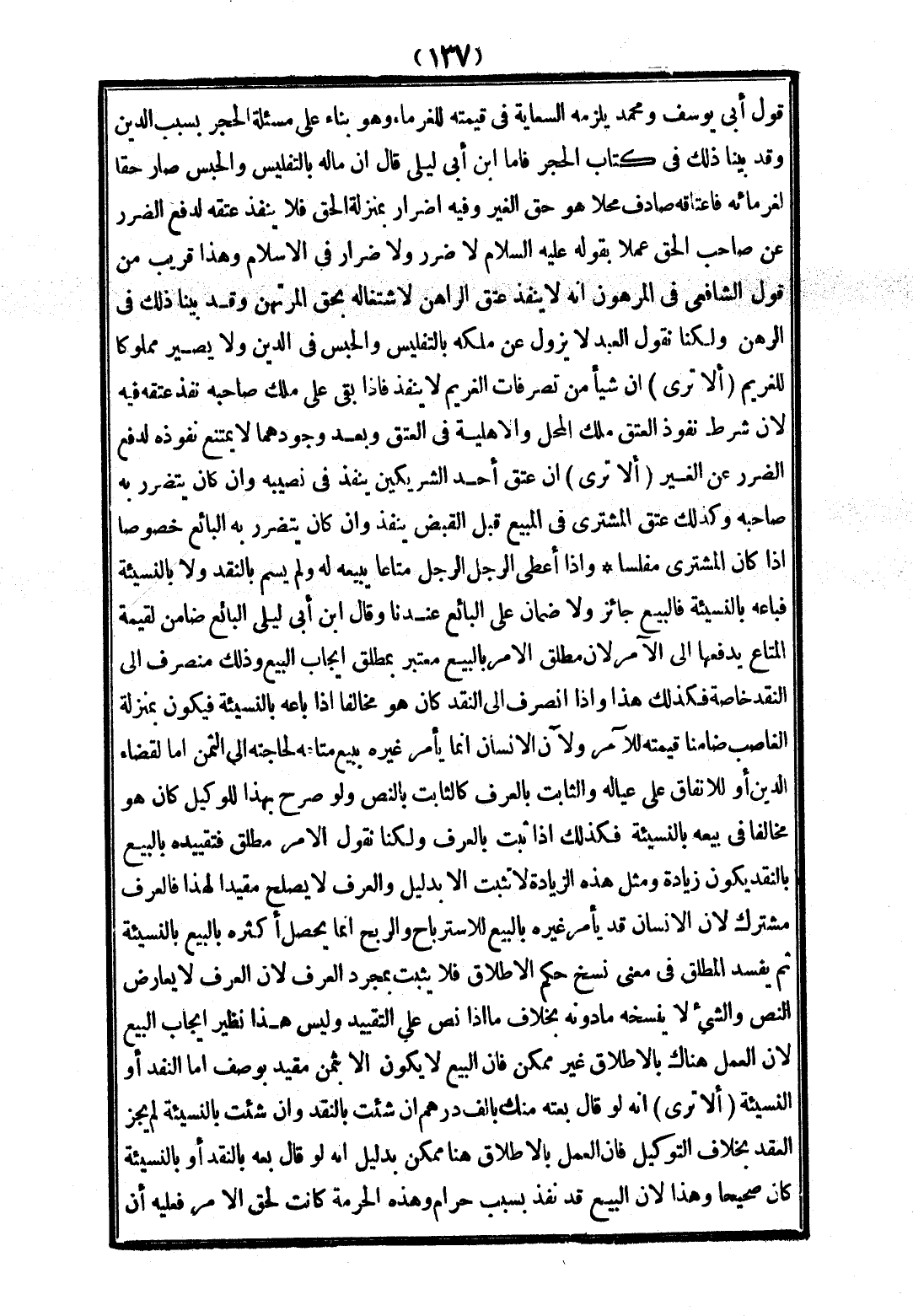 قَوْلِ أَبِي يُوسُفَ وَمُحَمَّدٍ يَلْزَمُهُ السِّعَايَةُ فِي قِيمَتِهِ لِلْغُرَمَاءِ وَهُوَ بِنَاءٌ عَلَى مَسْأَلَةِ الْحَجْرِ بِسَبَبِ الدَّيْنِ وَقَدْ بَيَّنَّا ذَلِكَ فِي كِتَابِ الْحَجْرِ.
