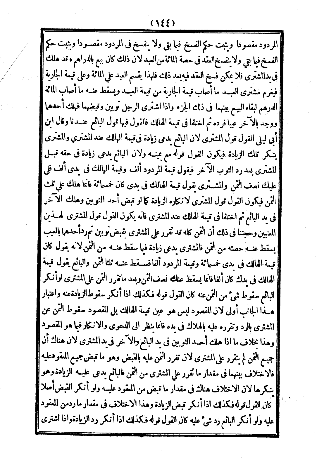 الْمَرْدُودِ مَقْصُودًا وَيَثْبُتُ حُكْمُ الْفَسْخِ فِيمَا بَقِيَ وَلَا يَنْفَسِخُ فِي الْمَرْدُودِ مَقْصُودًا وَيَثْبُتُ حُكْمُ الْفَسْخِ فِيمَا بَقِيَ وَلَا يَنْفَسِخُ الْعَقْدُ فِي حِصَّةِ الْمِائَةِ مِنْ الْعَبْدِ لِأَنَّ ذَلِكَ كَانَ بِيَعًا بِالدَّرَاهِمِ وَقَدْ هَلَكَ فِي يَدِ الْمُشْتَرِي فَلَا يُمْكِنُ فَسْخُ الْعَقْدِ فِيهِ بَعْدَ ذَلِكَ فَلِهَذَا يُقَسَّمُ الْعَبْدُ عَلَى الْمِائَةِ وَعَلَى قِيمَةِ الْجَارِيَةِ فَيَغْرَمُ مُشْتَرِي الْعَبْدِ مَا أَصَابَ قِيمَةَ الْجَارِيَةِ مِنْ قِيمَةِ الْعَبْدِ وَيَسْقُطُ عَنْهُ مَا أَصَابَ الْمِائَةَ الدِّرْهَمَ لِبَقَاءِ الْبَيْعِ بَيْنَهُمَا فِي ذَلِكَ الْجُزْءِ.