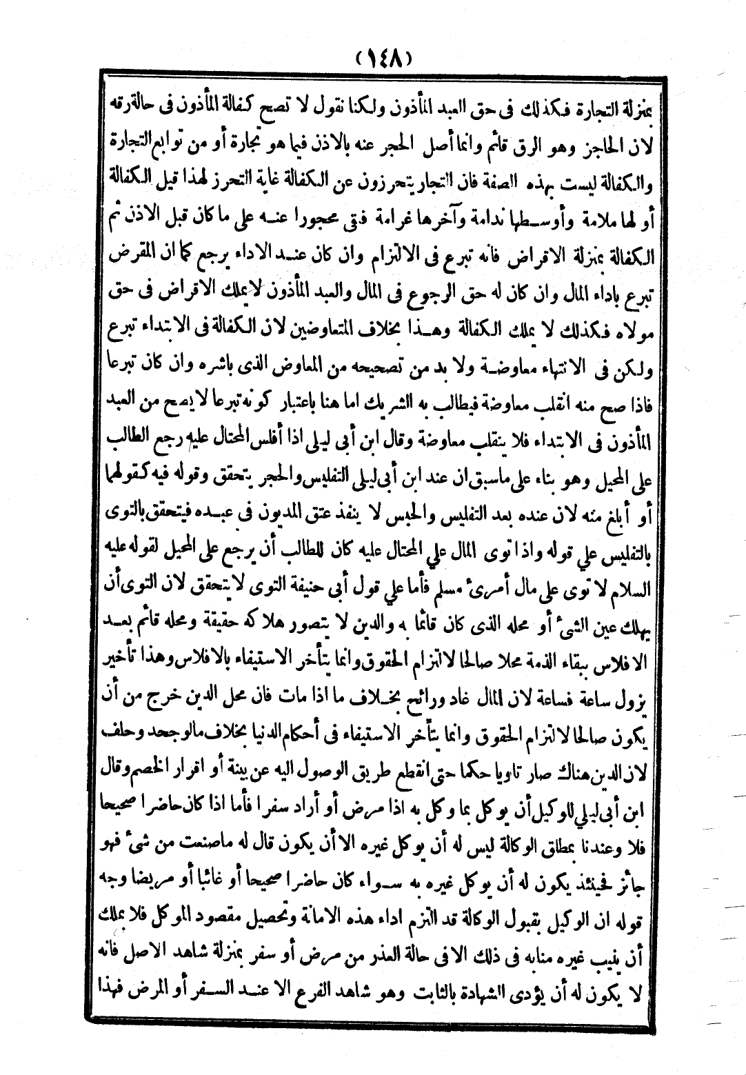 بِمَنْزِلَةِ التِّجَارَةِ فَكَذَلِكَ فِي حَقِّ الْعَبْدِ الْمَأْذُونِ وَلَكِنَّا نَقُولُ لَا تَصِحُّ كَفَالَةُ الْمَأْذُونِ فِي حَالَةِ رِقِّهِ لِأَنَّ الْحَاجِزَ وَهُوَ الرِّقُّ قَائِمٌ وَإِنَّمَا أَصْلُ الْحَجْرِ عَنْهُ بِالْإِذْنِ فِيمَا هُوَ تِجَارَةٌ أَوْ مِنْ تَوَابِعِ التِّجَارَةِ وَالْكَفَالَةُ لَيْسَتْ بِهَذِهِ الصِّفَةِ فَإِنَّ التُّجَّارَ يَتَحَرَّزُونَ عَنْ الْكَفَالَةِ غَايَةَ التَّحَرُّزِ لِهَذَا قِيلَ: الْكَفَالَةُ أَوَّلُهَا مَلَامَةٌ وَأَوْسَطُهَا نَدَامَةٌ وَآخِرُهَا غَرَامَةٌ، فَبَقِيَ مَحْجُورًا عَنْهُ عَلَى مَا كَانَ قَبْلَ الْإِذْنِ ثُمَّ الْكَفَالَةُ بِمَنْزِلَةِ الْإِقْرَاضِ فَإِنَّهُ تَبَرُّعٌ فِي الِالْتِزَامِ وَإِنْ كَانَ عِنْدَ الْأَدَاءِ يَرْجِعُ كَمَا أَنَّ الْمُقْرِضَ تَبَرَّعَ بِأَدَاءِ الْمَالِ وَإِنْ كَانَ لَهُ حَقُّ الرُّجُوعِ فِي الْمَالِ وَالْعَبْدُ الْمَأْذُونُ لَا يَمْلِكُ الْإِقْرَاضَ فِي حَقِّ مَوْلَاهُ فَكَذَلِكَ لَا يَمْلِكُ الْكَفَالَةَ وَهَذَا بِخِلَافِ الْمُتَعَاوِضَيْنِ لِأَنَّ الْكَفَالَةَ فِي الِابْتِدَاءِ تَبَرُّعٌ وَلَكِنْ فِي الِانْتِهَاءِ مُعَاوَضَةٌ وَلَا بُدَّ مِنْ تَصْحِيحِهِ مِنْ الْمُعَاوِضِ الَّذِي بَاشَرَهُ وَإِنْ كَانَ تَبَرُّعًا فَإِذَا صَحَّ مِنْهُ انْقَلَبَ مُعَاوَضَةً فَيُطَالِبُ بِهِ الشَّرِيكَ أَمَّا هُنَا بِاعْتِبَارِ كَوْنِهِ تَبَرُّعًا لَا يَصِحُّ مِنْ الْعَبْدِ الْمَأْذُونِ فِي الِابْتِدَاءِ فَلَا يَنْقَلِبُ مُعَاوَضَةً.