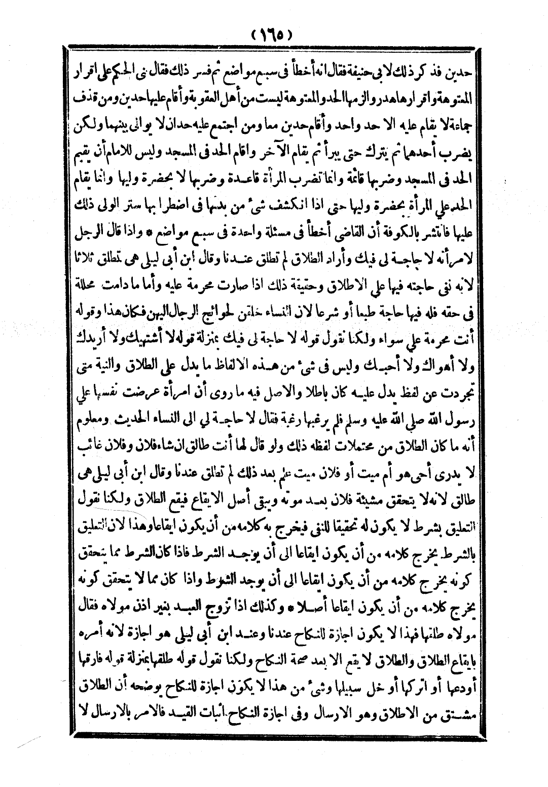 حَدَّيْنِ فَذُكِرَ ذَلِكَ لِأَبِي حَنِيفَةَ فَقَالَ إنَّهُ أَخْطَأَ فِي سَبْعِ مَوَاضِعَ ثُمَّ فَسَّرَ ذَلِكَ فَقَالَ بَنَى الْحُكْمَ عَلَى إقْرَارِ الْمَعْتُوهَةِ وَإِقْرَارُهَا هَدَرٌ وَأَلْزَمَهَا الْحَدَّ وَالْمَعْتُوهَةُ لَيْسَتْ مِنْ أَهْلِ الْعُقُوبَةِ وَأَقَامَ عَلَيْهَا حَدَّيْنِ وَمَنْ قَذَفَ جَمَاعَةً لَا يُقَامُ عَلَيْهِ إلَّا حَدٌّ وَاحِدٌ وَأَقَامَ حَدَّيْنِ مَعًا وَمَنْ اجْتَمَعَ عَلَيْهِ حَدَّانِ لَا يُوَالِي بَيْنَهُمَا وَلَكِنْ يَضْرِبُ أَحَدَهُمَا ثُمَّ يُتْرَكُ حَتَّى يَبْرَأَ ثُمَّ يُقَامُ الْآخَرُ وَأَقَامَ الْحَدَّ فِي الْمَسْجِدِ وَلَيْسَ لِلْإِمَامِ أَنْ يُقِيمَ الْحَدَّ فِي الْمَسْجِدِ وَضَرَبَهَا قَائِمَةً وَإِنَّمَا تُضْرَبُ الْمَرْأَةُ قَاعِدَةً وَضَرَبَهَا لَا بِحَضْرَةِ وَلِيِّهَا وَإِنَّمَا يُقَامُ الْحَدُّ عَلَى الْمَرْأَةِ بِحَضْرَةِ وَلِيِّهَا حَتَّى إذَا انْكَشَفَ شَيْءٌ مِنْ بَدَنِهَا فِي اضْطِرَابِهَا سَتَرَ الْوَلِيُّ ذَلِكَ عَلَيْهَا فَانْتَشَرَ بِالْكُوفَةِ أَنَّ الْقَاضِيَ أَخْطَأَ فِي مَسْأَلَةٍ وَاحِدَةٍ فِي سَبْعِ مَوَاضِعَ.