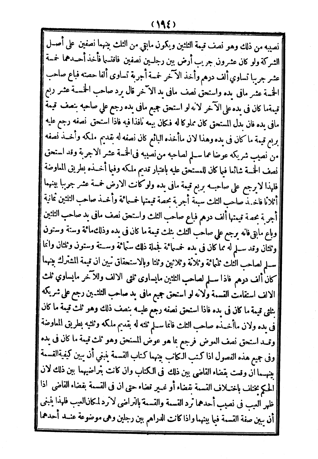 وَلَوْ كَانَ عِشْرُونَ جَرِيبَ أَرْضٍ بَيْنَ رَجُلَيْنِ نِصْفَيْنِ فَاقْتَسَمَا فَأَخَذَ أَحَدُهُمَا خَمْسَةَ عَشَرَ جَرِيبًا تُسَاوِي أَلْفَ دِرْهَمٍ، وَأَخَذَ الْآخَرُ خَمْسَةَ أَجْرِبَةٍ تُسَاوِي أَلْفَ حِصَّتِهِ فَبَاعَ صَاحِبُ الْخَمْسَةَ عَشَرَ مَا فِي يَدِهِ وَاسْتَحَقَّ نِصْفَ مَا فِي يَدِ الْآخَرِ قَالَ: يَرُدُّ صَاحِبُ الْخَمْسَةَ عَشَرَ رُبُعَ قِيمَةِ مَا كَانَ فِي يَدِهِ عَلَى الْآخَرِ؛ لِأَنَّهُ لَوْ اسْتَحَقَّ جَمِيعَ مَا فِي يَدِهِ رَجَعَ عَلَى صَاحِبِهِ بِنِصْفِ قِيمَةِ مَا فِي يَدِهِ فَإِنَّ بَدَلَ الْمُسْتَحَقِّ كَانَ مَمْلُوكًا لَهُ فَكَانَ بَيْعُهُ نَافِذًا فِيهِ، فَإِذَا اسْتَحَقَّ نِصْفَهُ رَجَعَ عَلَيْهِ بِرُبُعِ قِيمَةِ مَا كَانَ فِي يَدِهِ، وَهَذَا لِأَنَّ مَا أَخَذَهُ الْبَائِعُ كَانَ نِصْفُهُ لَهُ بِقَدِيمِ مِلْكِهِ، وَأَخَذَ نِصْفَهُ مِنْ نَصِيبِ شَرِيكِهِ عِوَضًا عَمَّا سَلَّمَ لِصَاحِبِهِ مِنْ نَصِيبِهِ فِي الْخَمْسَةَ عَشَرَ الْأَجْرِبَةِ، وَقَدْ اسْتَحَقَّ نِصْفَ الْخَمْسَةَ شَائِعًا فِيمَا كَانَ لِلْمُسْتَحَقِّ عَلَيْهِ بِاعْتِبَارِ قَدِيمِ مِلْكِهِ، وَفِيمَا أَخَذَهُ بِطَرِيقِ الْمُعَاوَضَةِ فَلِهَذَا لَا يَرْجِعُ عَلَى صَاحِبِهِ بِرُبُعِ قِيمَةِ مَا فِي يَدِهِ.