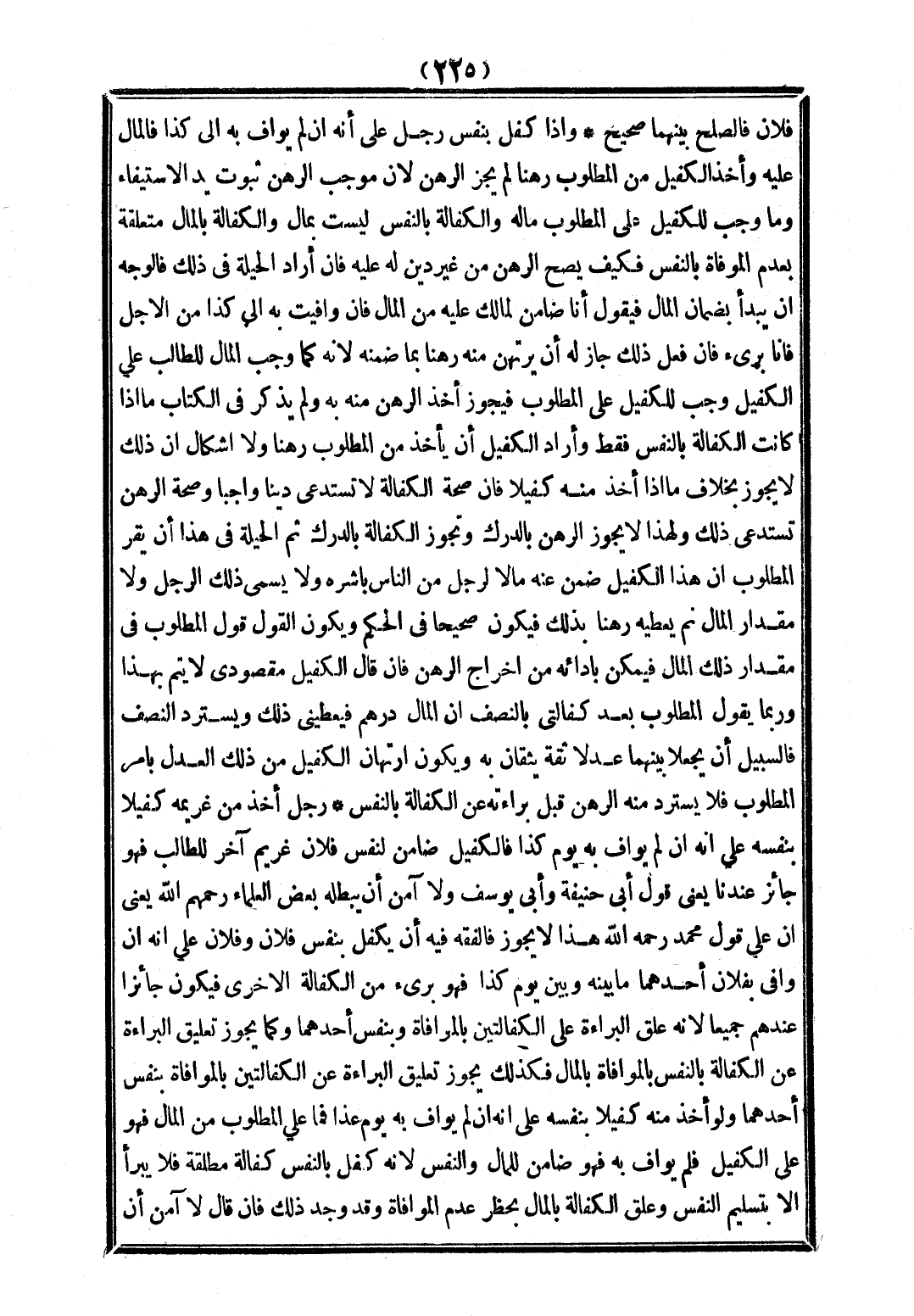 وَإِذَا كَفَلَ بِنَفْسِ رَجُلٍ عَلَى أَنَّهُ إنْ لَمْ يُوَافِ بِهِ إلَى كَذَا فَالْمَالُ عَلَيْهِ وَأَخَذَ الْكَفِيلُ مِنْ الْمَطْلُوبِ رَهْنًا لَمْ يَجُزْ الرَّهْنُ؛ لِأَنَّ مُوجَبَ الرَّهْنِ ثُبُوتُ يَدِ الِاسْتِيفَاءِ، وَمَا وَجَبَ لِلْكَفِيلِ عَلَى الْمَطْلُوبِ مَالُهُ، وَالْكَفَالَةُ بِالنَّفْسِ لَيْسَتْ بِمَالٍ، وَالْكَفَالَةُ بِالْمَالِ مُتَعَلِّقَةٌ بِعَدَمِ الْمُوَافَاةِ بِالنَّفْسِ فَكَيْفَ يَصِحُّ الرَّهْنُ مِنْ غَيْرِ دَيْنٍ لَهُ عَلَيْهِ، فَإِنْ أَرَادَ الْحِيلَةَ فِي ذَلِكَ فَالْوَجْهُ أَنْ يَبْدَأَ بِضَمَانِ الْمَالِ فَيَقُولَ: أَنَا ضَامِنٌ لِمَا لَكَ عَلَيْهِ مِنْ الْمَالِ، فَإِنْ وَافَيْت بِهِ إلَى كَذَا مِنْ الْأَجَلِ، فَأَنَا بَرِيءٌ، فَإِنْ فَعَلَ ذَلِكَ جَازَ لَهُ أَنْ يَرْتَهِنَ مِنْهُ رَهْنًا بِمَا ضَمِنَهُ؛ لِأَنَّهُ كَمَا وَجَبَ الْمَالُ لِلطَّالِبِ عَلَى الْكَفِيلِ وَجَبَ لِلْكَفِيلِ عَلَى الْمَطْلُوبِ فَيَجُوزُ أَخْذُ الرَّهْنِ مِنْهُ بِهِ، وَلَمْ يَذْكُرْ فِي الْكِتَابِ مَا إذَا كَانَتْ الْكَفَالَةُ بِالنَّفْسِ فَقَطْ، وَأَرَادَ الْكَفِيلُ أَنْ يَأْخُذَ مِنْ الْمَطْلُوبِ رَهْنًا وَلَا إشْكَالَ أَنَّ ذَلِكَ لَا يَجُوزُ بِخِلَافِ مَا إذَا أَخَذَ مِنْهُ كَفِيلًا فَإِنَّ صِحَّةَ الْكَفَالَةِ لَا تَسْتَدْعِي دَيْنًا وَاجِبًا، وَصِحَّةُ الرَّهْنِ تَسْتَدْعِي ذَلِكَ؛ وَلِهَذَا لَا يَجُوزُ الرَّهْنُ بِالدَّرْكِ، وَتَجُوزُ الْكَفَالَةُ بِالدَّرْكِ ثُمَّ الْحِيلَةُ فِي هَذَا: أَنْ يُقِرَّ الْمَطْلُوبُ أَنَّ هَذَا الْكَفِيلَ ضَمِنَ عَنْهُ مَالًا لِرَجُلٍ مِنْ النَّاسِ بَاشَرَهُ وَلَا يُسَمِّيَ ذَلِكَ الرَّجُلَ وَلَا مِقْدَارَ الْمَالِ ثُمَّ يُعْطِيَهُ رَهْنًا بِذَلِكَ فَيَكُونَ صَحِيحًا فِي الْحُكْمِ، وَيَكُونَ الْقَوْلُ قَوْلَ الْمَطْلُوبِ فِي مِقْدَارِ ذَلِكَ الْمَالِ، فَيُمَكَّنَ بِأَدَائِهِ مِنْ إخْرَاجِ الرَّهْنِ، فَإِنْ قَالَ الْكَفِيلُ: مَقْصُودِي لَا يَتِمُّ بِهَذَا وَرُبَمَا يَقُولُ: الْمَطْلُوبُ بَعْدَ كَفَالَتِي بِالنِّصْفِ أَنَّ الْمَالَ دِرْهَمٌ فَيُعْطِينِي ذَلِكَ وَيَسْتَرِدَّ النِّصْفَ فَالسَّبِيلُ أَنْ يَجْعَلَا بَيْنَهُمَا عَدْلًا ثِقَةً يَثِقَانِ بِهِ، وَيَكُونَ ارْتِهَانُ الْكَفِيلِ مِنْ ذَلِكَ الْعَدْلِ بِأَمْرِ الْمَطْلُوبِ فَلَا يَسْتَرِدُّ مِنْهُ الرَّهْنَ قَبْلَ بَرَاءَتِهِ عَنْ الْكَفَالَةِ بِالنَّفْسِ.