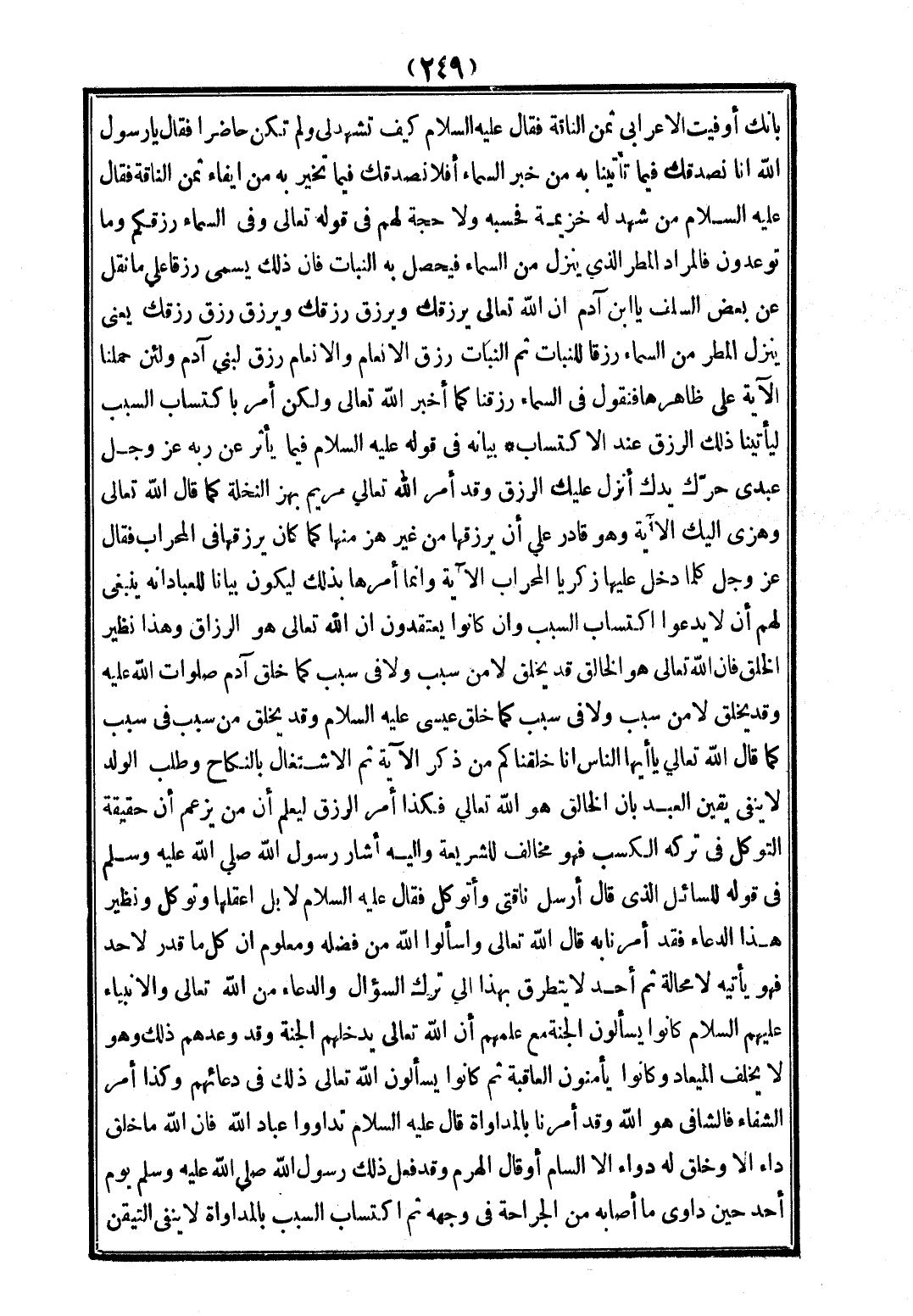 بِأَنَّك أَوْفَيْت الْأَعْرَابِيَّ ثَمَنَ النَّاقَةِ فَقَالَ - عَلَيْهِ السَّلَامُ -: كَيْفَ تَشْهَدُ لِي وَلَمْ تَكُنْ حَاضِرًا؟ فَقَالَ يَا رَسُولَ اللَّهِ: إنَّا نُصَدِّقُك فِيمَا تَأْتِينَا بِهِ مِنْ خَبَرِ السَّمَاءِ أَفَلَا نُصَدِّقُك فِيمَا تُخْبِرُ بِهِ مِنْ إيفَاءِ ثَمَنِ النَّاقَةِ، فَقَالَ - عَلَيْهِ السَّلَامُ - مَنْ شَهِدَ لَهُ خُزَيْمَةُ فَحَسْبُهُ»، وَلَا حُجَّةَ لَهُمْ فِي قَوْله تَعَالَى {وَفِي السَّمَاءِ رِزْقُكُمْ وَمَا تُوعَدُونَ} [الذاريات: 22] فَالْمُرَادُ الْمَطَرُ الَّذِي يَنْزِلُ مِنْ السَّمَاءِ فَيَحْصُلُ بِهِ النَّبَاتُ، فَإِنَّ ذَلِكَ يُسَمَّى رِزْقًا عَلَى مَا نُقِلَ عَنْ بَعْضِ السَّلَفِ يَا ابْنَ آدَمَ إنَّ اللَّهَ تَعَالَى يَرْزُقُك وَيَرْزُقُ رِزْقَك وَيَرْزُقُ رِزْقَ رِزْقِك يَعْنِي يُنْزِلُ الْمَطَرَ مِنْ السَّمَاءِ رِزْقًا لِلنَّبَاتِ ثُمَّ النَّبَاتُ رِزْقُ الْأَنْعَامِ وَالْأَنْعَامُ رِزْقٌ لِبَنِي آدَمَ، وَلَئِنْ حَمَلْنَا الْآيَةَ عَلَى ظَاهِرِهَا فَنَقُولُ: فِي السَّمَاءِ رِزْقُنَا، كَمَا أَخْبَرَ اللَّهُ تَعَالَى وَلَكِنْ أَمَرَ بِاكْتِسَابِ السَّبَبِ لِيَأْتِيَنَا ذَلِكَ الرِّزْقُ عِنْدَ الِاكْتِسَابِ.