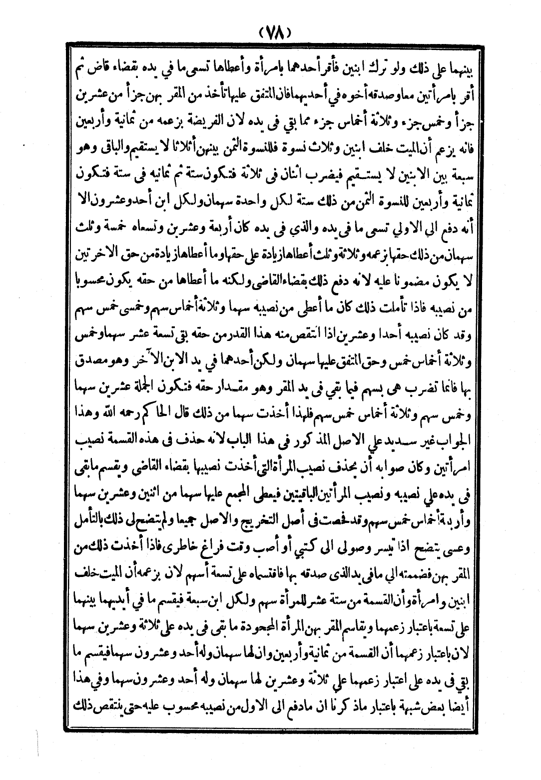 وَهَذَا الْجَوَابُ غَيْرُ سَدِيدٍ عَلَى الْأَصْلِ الْمَذْكُورِ فِي هَذَا الْبَابِ؛ لِأَنَّهُ حَذَفَ فِي هَذِهِ الْقِسْمَةِ نَصِيبَ امْرَأَتَيْنِ، وَكَانَ صَوَابُهُ أَنْ يَحْذِفَ نَصِيبَ الْمَرْأَةِ الَّتِي أَخَذَتْ نَصِيبَهَا بِقَضَاءِ الْقَاضِي وَيَقْسِمُ مَا بَقِيَ فِي يَدِهِ عَلَى نَصِيبِهِ وَنَصِيبِ الْمَرْأَتَيْنِ الْبَاقِيَتَيْنِ فَيُعْطِي الْمُجْمَعَ عَلَيْهَا سَهْمًا مِنْ اثْنَيْنِ وَعِشْرِينَ سَهْمًا وَأَرْبَعَةَ أَخْمَاسِ خُمُسِ سَهْمٍ، وَقَدْ فَحَصْتُ فِي أَصْلِ التَّخْرِيجِ وَالْأَصْلِ جَمِيعًا وَلَمْ يَتَّضِحْ لِي ذَلِكَ بِالتَّأَمُّلِ وَعَسَى يَتَّضِحُ إذَا تَيَسَّرَ وُصُولِي إلَى كُتُبِي أَوْ أُصِيبُ وَقْتَ فَرَاغِ خَاطِرِي فَإِذَا أَخَذْتَ ذَلِكَ مِنْ الْمُقَرِّ بِهِنَّ فَضَمَمْتَهُ إلَى مَا فِي يَدِ الَّذِي صَدَّقَهُ بِهَا فَاقْتَسَمَاهُ عَلَى تِسْعَةِ أَسْهُمٍ؛ لِأَنَّ بِزَعْمِهِ أَنَّ الْمَيِّتَ خَلَّفَ ابْنَيْنِ وَامْرَأَةً وَأَنَّ الْقِسْمَةَ مِنْ سِتَّةَ عَشَرَ لِلْمَرْأَةِ سَهْمٌ وَلِكُلِّ ابْنٍ سَبْعَةٌ فَيَقْسِمُ مَا فِي أَيْدِيهِمَا بَيْنَهُمَا عَلَى تِسْعَةٍ بِاعْتِبَارِ زَعْمِهِمَا وَيُقَاسِمُ الْمُقَرُّ بِهِنَّ الْمَرْأَةَ الْمَجْحُودَةَ مَا بَقِيَ فِي يَدِهِ عَلَى ثَلَاثَةٍ وَعِشْرِينَ سَهْمًا لِأَنَّ بِاعْتِبَارِ زَعْمِهِمَا أَنَّ الْقِسْمَةَ مِنْ ثَمَانِيَةٍ وَأَرْبَعِينَ وَأَنَّ لَهَا سَهْمَيْنِ وَلَهُ أَحَدٌ وَعِشْرُونَ سَهْمًا فَيَقْسِمُ مَا بَقِيَ فِي يَدِهِ عَلَى اعْتِبَارِ زَعْمِهِمَا عَلَى ثَلَاثَةٍ وَعِشْرِينَ لَهَا سَهْمَانِ وَلَهُ أَحَدٌ وَعِشْرُونَ سَهْمًا، وَفِي هَذَا أَيْضًا بَعْضُ شُبْهَةٍ بِاعْتِبَارِ مَا ذَكَرْنَا أَنَّ مَا دَفَعَ إلَى الْأَوَّلِ مِنْ نَصِيبِهِ مَحْسُوبٌ عَلَيْهِ حَتَّى يُنْتَقَصَ ذَلِكَ