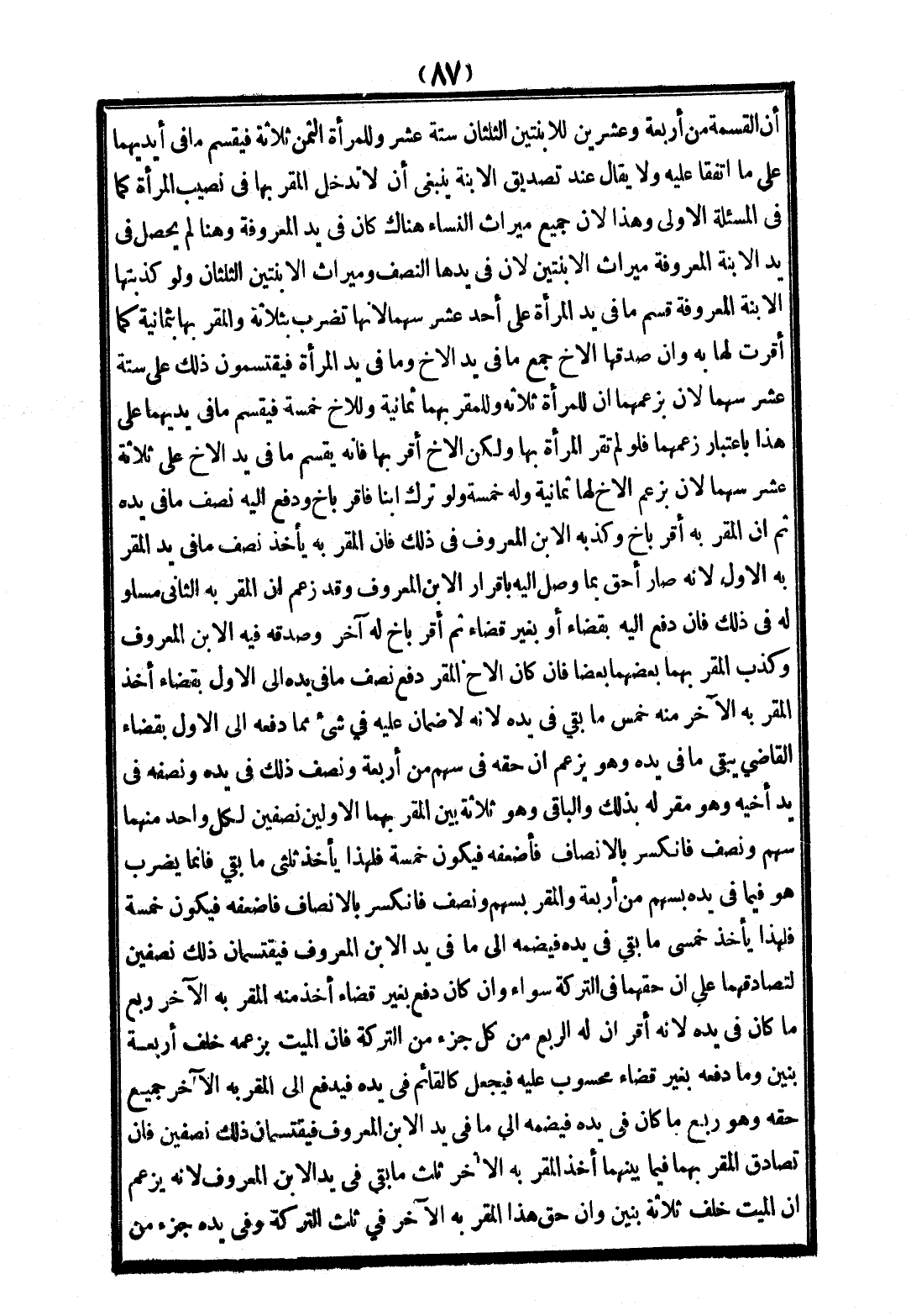 أَنَّ الْقِسْمَةَ مِنْ أَرْبَعَةٍ وَعِشْرِينَ لِلِابْنَتَيْنِ الثُّلُثَانِ سِتَّةَ عَشْر وَلِلْمَرْأَةِ الثُّمُنُ ثَلَاثَةٌ فَيَقْسِمُ مَا فِي أَيْدِيهِمَا عَلَى مَا اتَّفَقَا عَلَيْهِ وَلَا يُقَالُ عِنْدَ تَصْدِيقِ الِابْنَةِ يَنْبَغِي أَنْ لَا تَدْخُلَ الْمُقَرُّ بِهَا فِي نَصِيبِ الْمَرْأَةِ كَمَا فِي الْمَسْأَلَةِ الْأُولَى، وَهَذَا لِأَنَّ جَمِيعَ مِيرَاثِ النِّسَاءِ هُنَاكَ كَانَ فِي يَدِ الْمَعْرُوفَةِ وَهُنَا لَمْ يَحْصُلْ فِي يَدِ الِابْنَةِ الْمَعْرُوفَةِ مِيرَاثُ الِابْنَتَيْنِ لِأَنَّ فِي يَدِهَا النِّصْفُ وَمِيرَاثُ الِابْنَتَيْنِ الثُّلُثَانِ وَلَوْ كَذَّبَتْهَا الِابْنَةُ الْمَعْرُوفَةُ قُسِّمَ مَا فِي يَدِ الْمَرْأَةِ عَلَى أَحَدَ عَشَرَ سَهْمًا؛ لِأَنَّهَا تَضْرِبُ بِثَلَاثَةٍ وَالْمُقَرُّ بِهَا بِثَمَانِيَةٍ كَمَا أَقَرَّتْ لَهَا بِهِ، وَإِنْ صَدَّقَهَا الْأَخُ جُمِعَ مَا فِي يَدِ الْأَخِ وَمَا فِي يَدِ الْمَرْأَةِ فَيَقْتَسِمُونَ ذَلِكَ عَلَى سِتَّةَ عَشَرَ سَهْمًا؛ لِأَنَّ بِزَعْمِهِمَا أَنَّ لِلْمَرْأَةِ ثَلَاثَةً وَلِلْمُقَرِّ بِهِمَا ثَمَانِيَةً وَلِلْأَخِ خَمْسَةً فَيَقْسِمُ مَا فِي يَدَيْهِمَا عَلَى هَذَا بِاعْتِبَارِ زَعْمِهِمَا فَلَوْ لَمْ تُقِرَّ الْمَرْأَةُ بِهَا وَلَكِنَّ الْأَخَ أَقَرَّ بِهَا فَإِنَّهُ يَقْسِمُ مَا فِي يَدِ الْأَخِ عَلَى ثَلَاثَةَ عَشَرَ سَهْمًا؛ لِأَنَّ بِزَعْمِ الْأَخِ لَهَا ثَمَانِيَةٌ وَلَهُ خَمْسَةٌ