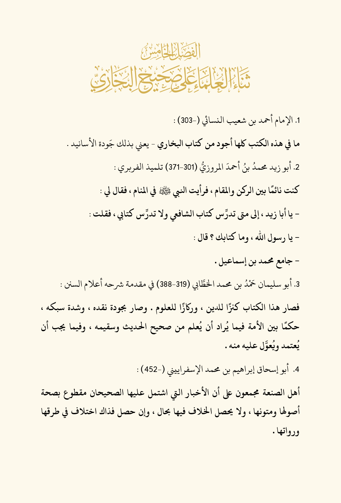 الفصل الخامس: ثناء العلماء على الجامع الصحيح
