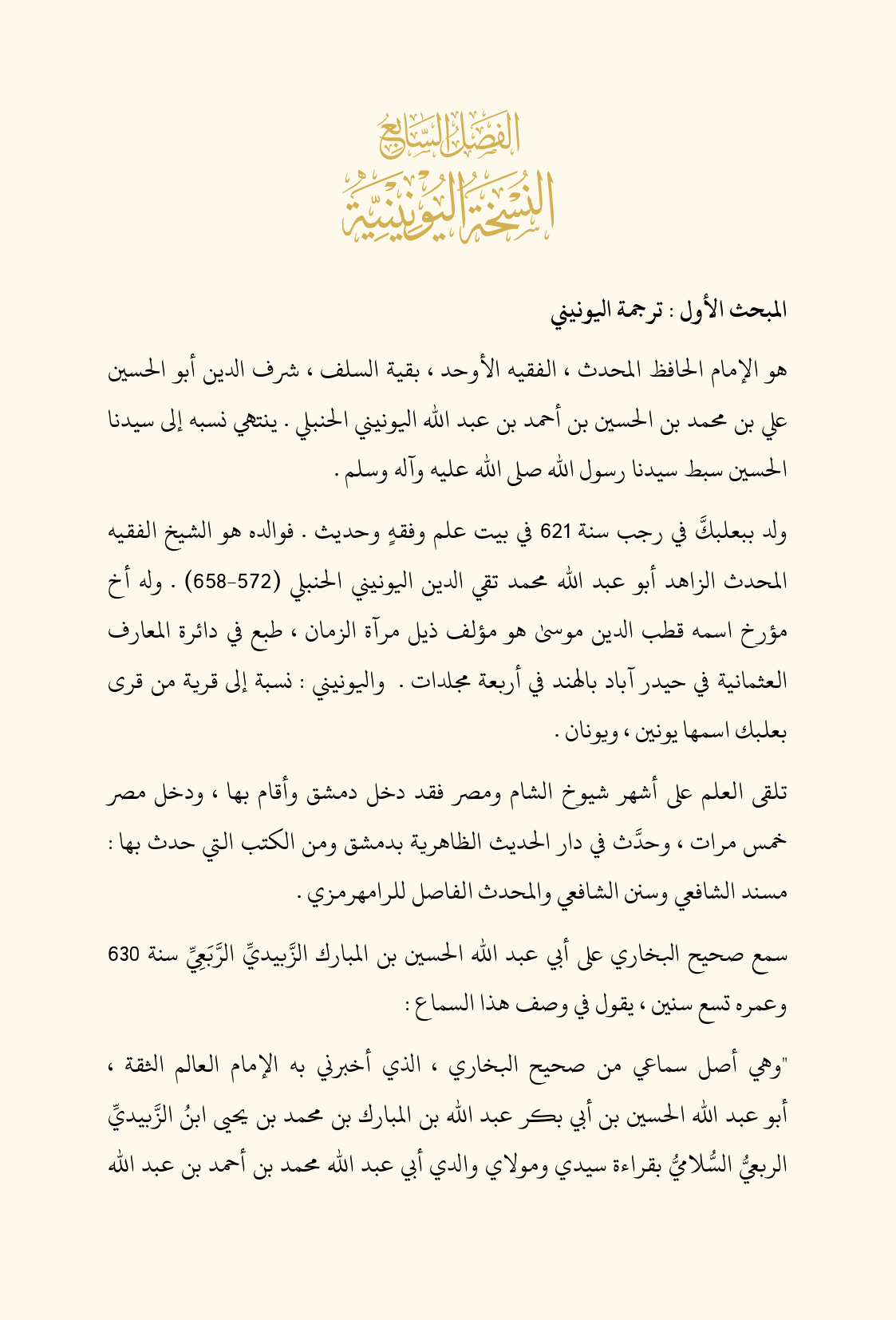 المبحث الأول: ترجمة اليونيني
