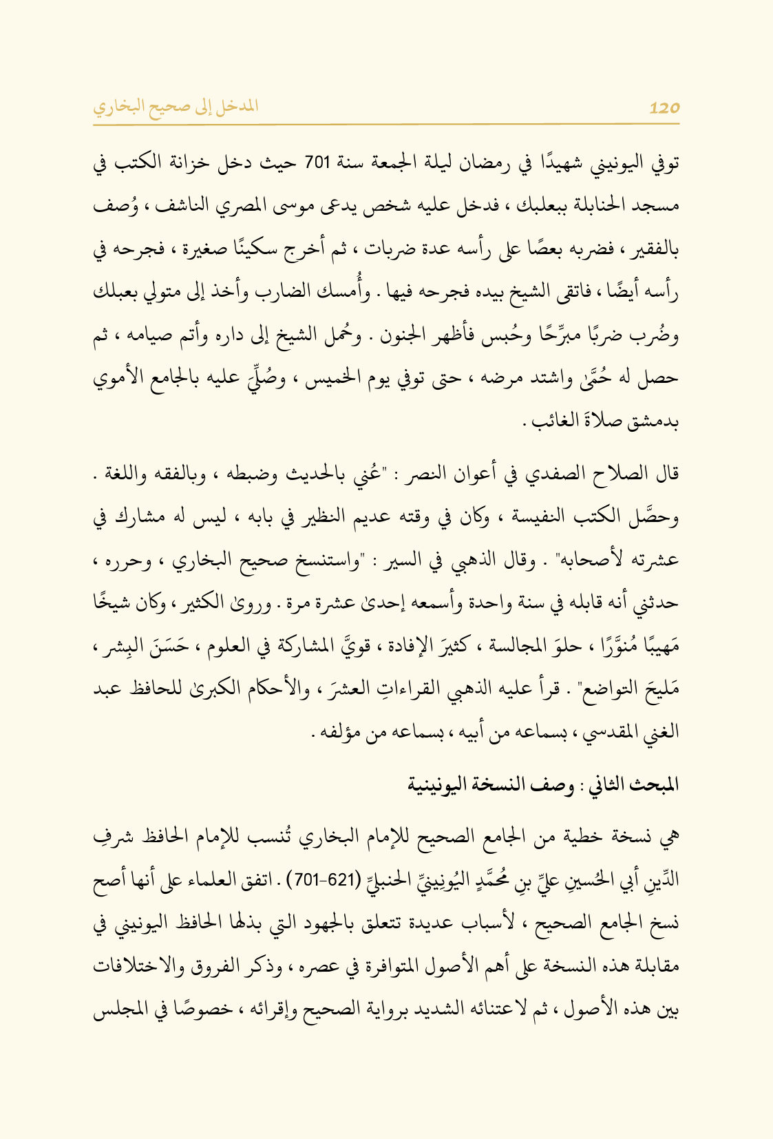 هي نسخة خطية من الجامع الصحيح للإمام البخاري تُنسب للإمام الحافظ شرفِ الدِّينِ أبي الحُسينِ عليِّ بنِ مُحمَّدٍ اليُونِينيِّ الحنبليِّ (٦٢١ - ٧٠١). اتفق العلماء على أنها أصح نسخ الجامع الصحيح، لأسباب عديدة تتعلق بالجهود التي بذلها الحافظ اليونيني في مقابلة هذه النسخة على أهم الأصول المتوافرة في عصره، وذكر الفروق والاختلافات بين هذه الأصول، ثم لاعتنائه الشديد برواية الصحيح وإقرائه، خصوصًا في المجلس