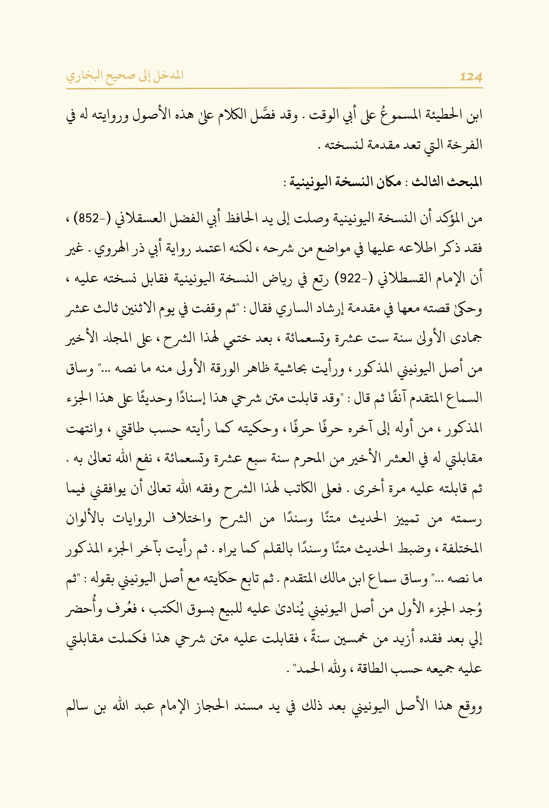 ابن الحطيئة المسموعُ على أبي الوقت. وقد فصَّل الكلام على هذه الأصول وروايته له في الفرخة التي تعد مقدمة لنسخته.