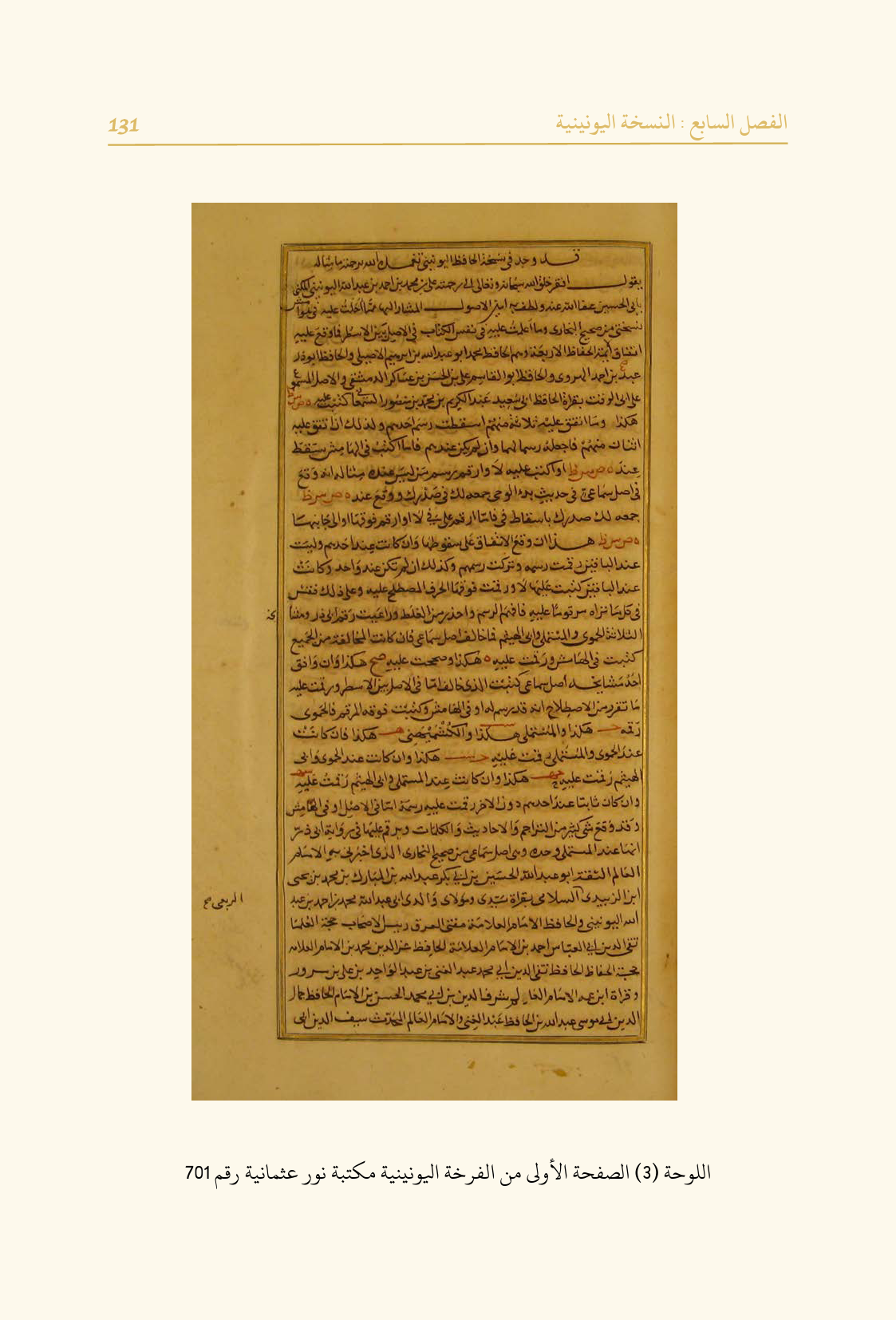 اللوحة (٣) الصفحة الأولى من الفرخة اليونينية مكتبة نور عثمانية رقم ٧٠١