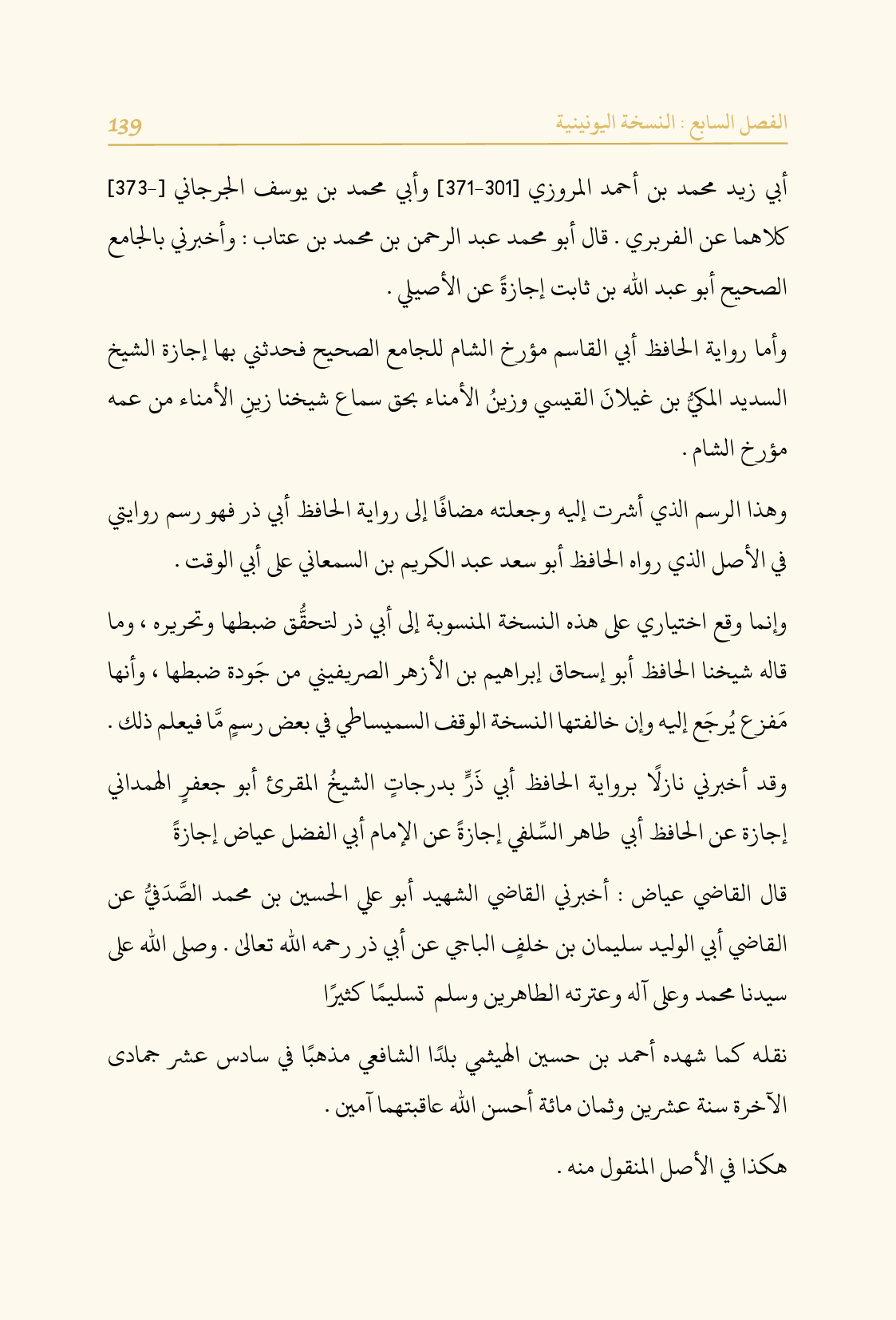 وهذا الرسم الذي أشرت إليه وجعلته مضافًا إلى رواية الحافظ أبي ذر فهو رسم روايتي في الأصل الذي رواه الحافظ أبو سعد عبد الكريم بن السمعاني على أبي الوقت.