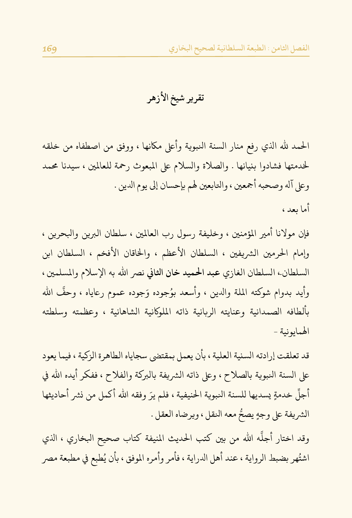 فإن مولانا أمير المؤمنين، وخليفة رسول رب العالمين، سلطان البرين والبحرين، وإمام الحرمين الشريفين، السلطان الأعظم، والخاقان الأفخم، السلطان ابن السلطان.، السلطان الغازي عبد الحميد خان الثاني نصر الله به الإسلام والمسلمين.، وأيد بدوام شوكته الملة والدين، وأسعد بوُجوده وَجوده عموم رعاياه، وحفَّ الله بألطافه الصمدانية وعنايته الربانية ذاته الملوكانية الشاهانية، وعظمته وسلطته الهمايونية -