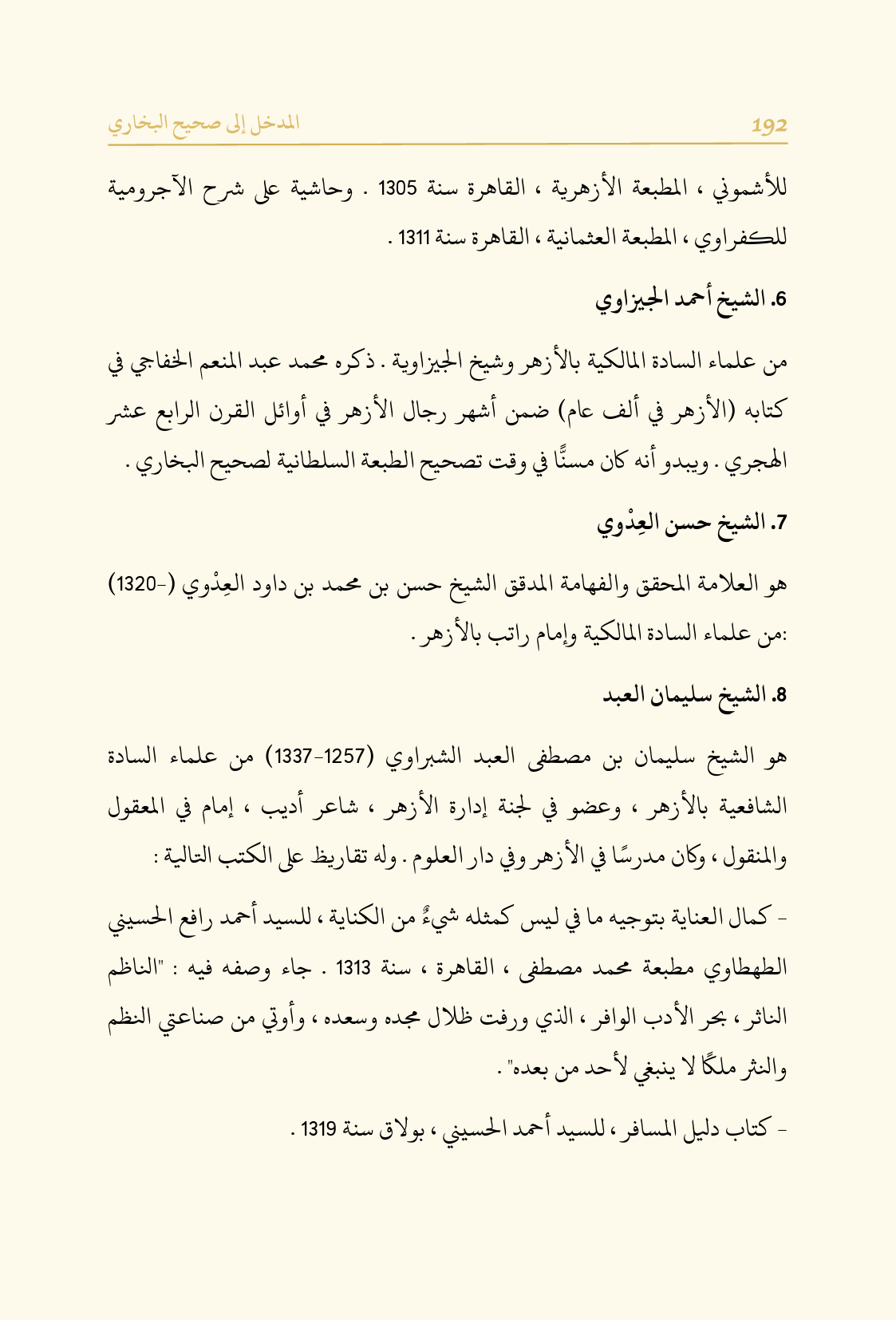 للأشموني، المطبعة الأزهرية، القاهرة سنة ١٣٠٥. وحاشية على شرح الآجرومية للكفراوي، المطبعة العثمانية، القاهرة سنة ١٣١١.