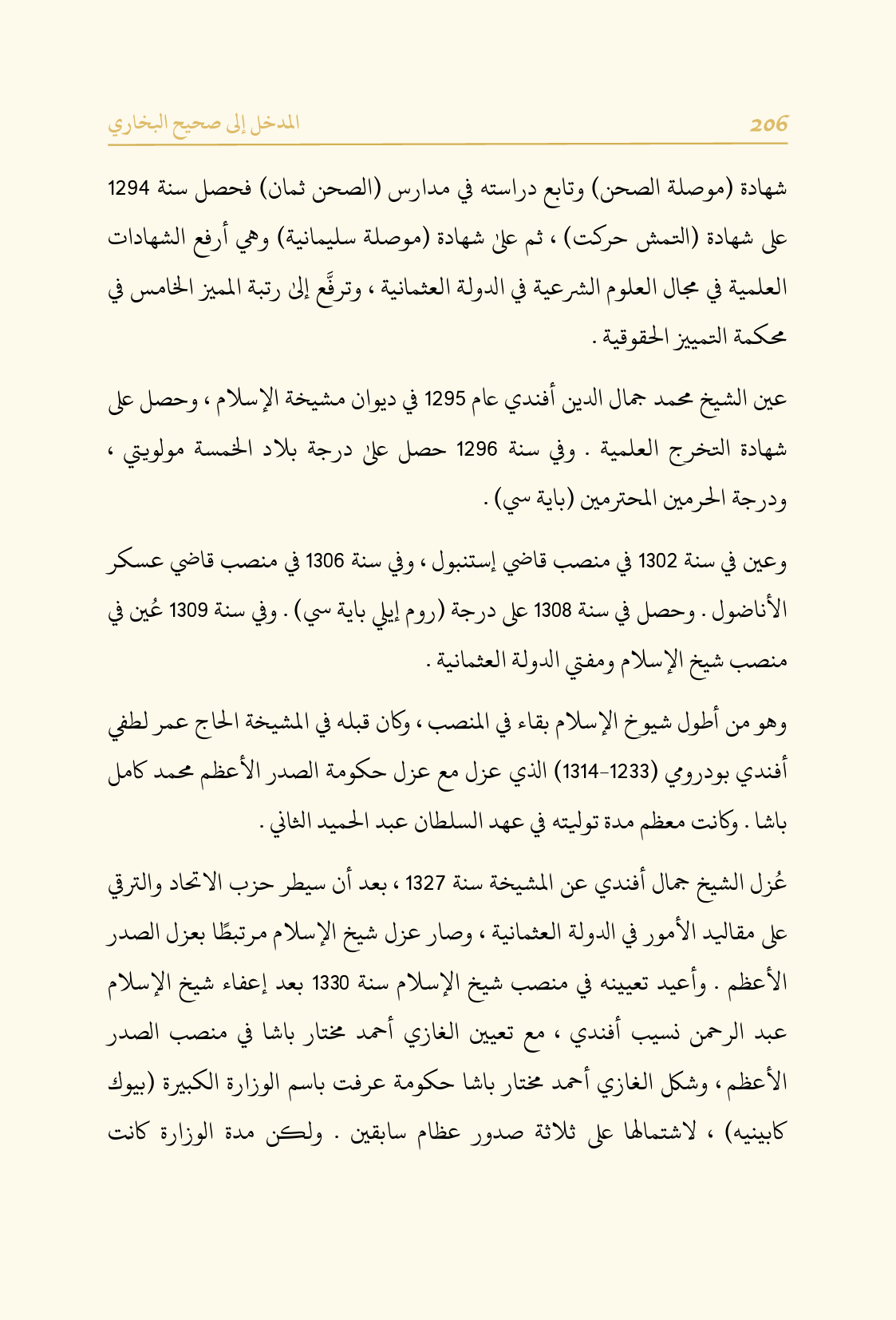 وهو من أطول شيوخ الإسلام بقاء في المنصب، وكان قبله في المشيخة الحاج عمر لطفي أفندي بودرومي (١٢٣٣ - ١٣١٤) الذي عزل مع عزل حكومة الصدر الأعظم محمد كامل باشا. وكانت معظم مدة توليته في عهد السلطان عبد الحميد الثاني.