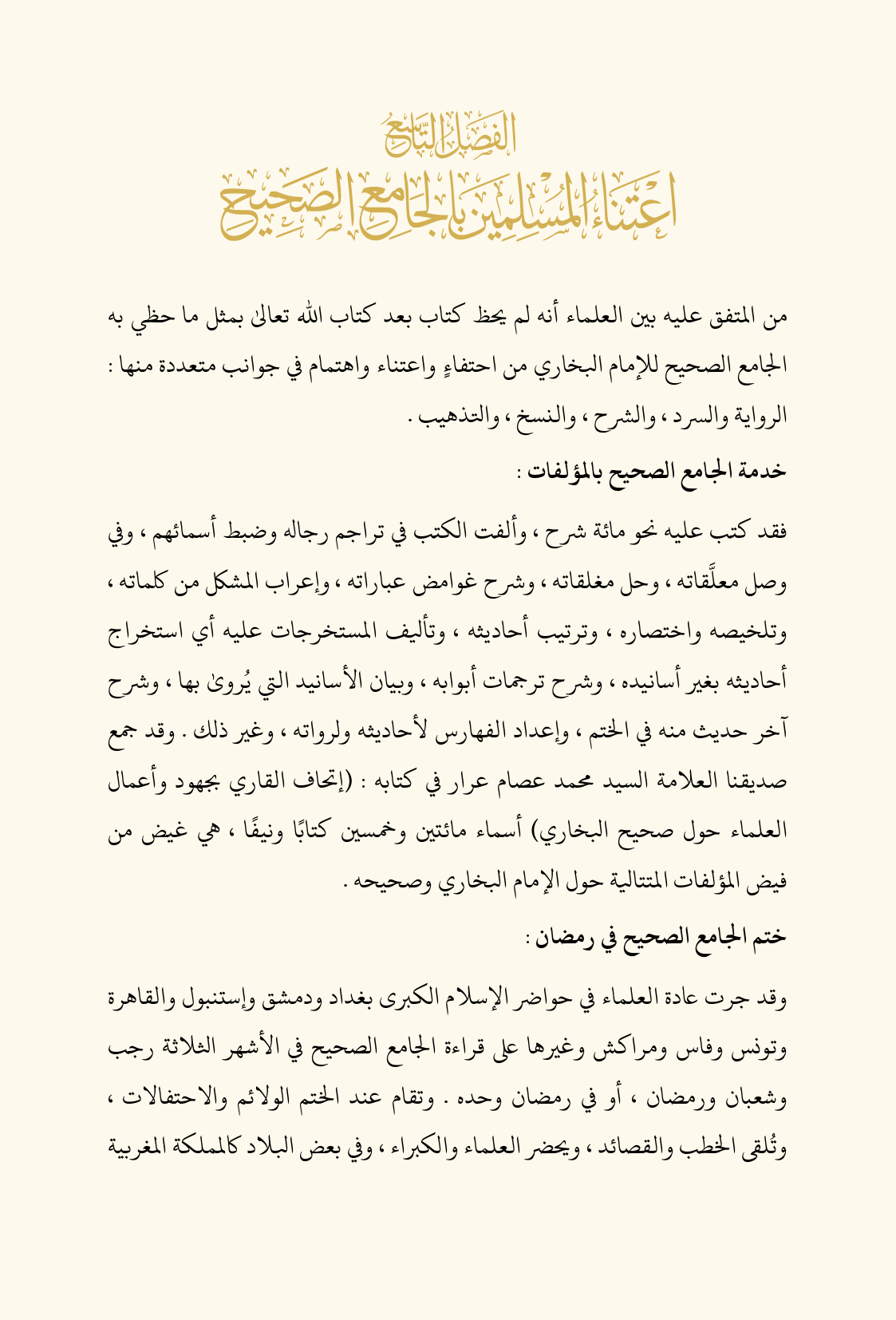 الفصل التاسع: اعتناء المسلمين بالجامع الصحيح