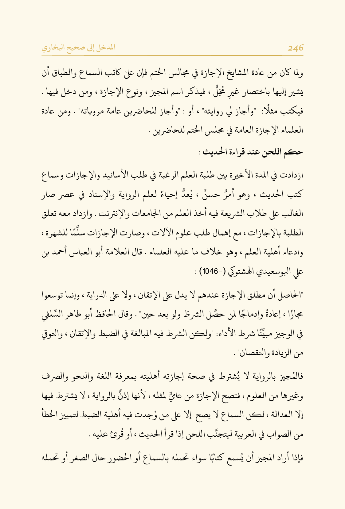 فالمُجيز بالرواية لا يُشترط في صحة إجازته أهليته بمعرفة اللغة والنحو والصرف وغيرها من العلوم، فتصح الإجازة من عاميٍّ لمثله.، لأنها إذنٌ بالرواية، لا يشترط فيها إلا العدالة، لكن السماع لا يصح إلا على من وُجدت فيه أهلية الضبط لتمييز الخطأ من الصواب في العربية ليتجنَّب اللحن إذا قرأ الحديث، أو قُرئ عليه.