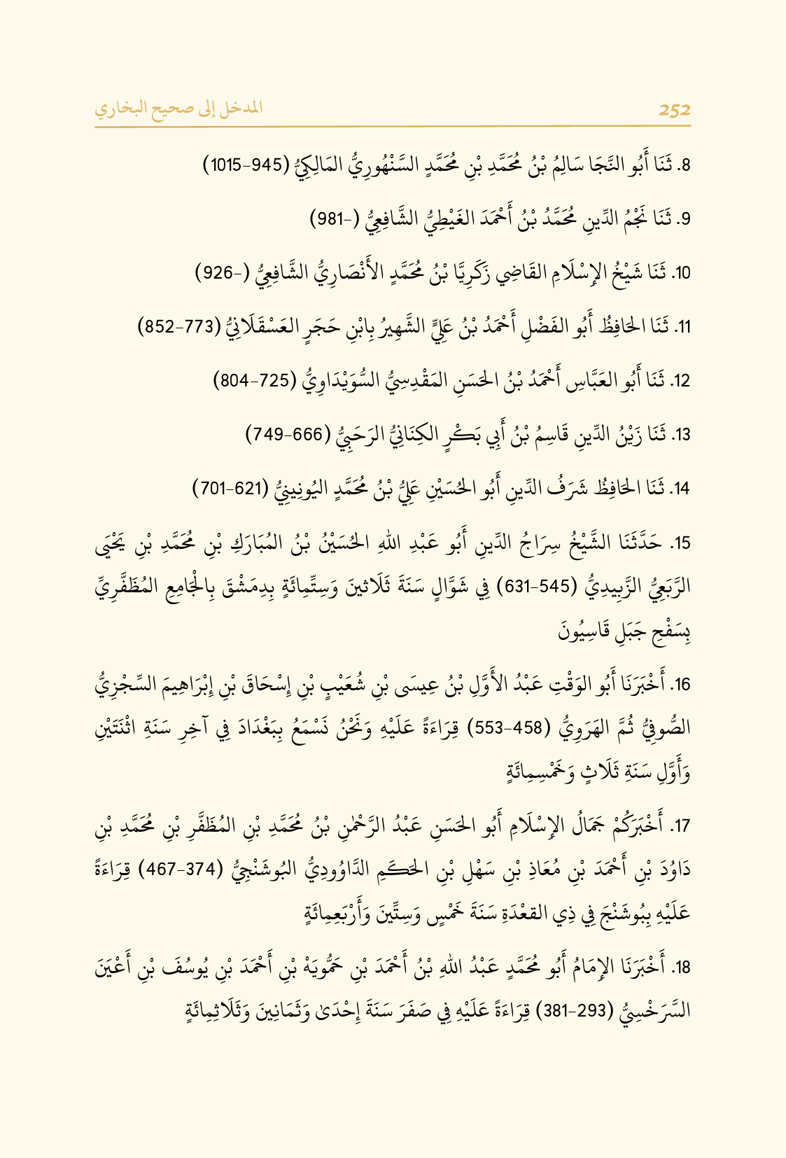 ١٦. أَخْبَرَنَا أَبُو الوَقْتِ عَبْدُ الأَوَّلِ بْنُ عِيسَى بْنِ شُعَيْبٍ بْنِ إِسْحَاقَ بْنِ إِبْرَاهِيمَ السِّجْزِيُّ الصُّوفِيُّ ثُمَّ الهَرَوِيُّ (٤٥٨ - ٥٥٣) قِرَاءَةً عَلَيْهِ وَنَحْنُ نَسْمَعُ بِبَغْدَادَ فِي آخِرِ سَنَةِ اثْنَتَيْنِ وَأَوَّلِ سَنَةِ ثَلَاثٍ وَخَمْسِمِائَةٍ