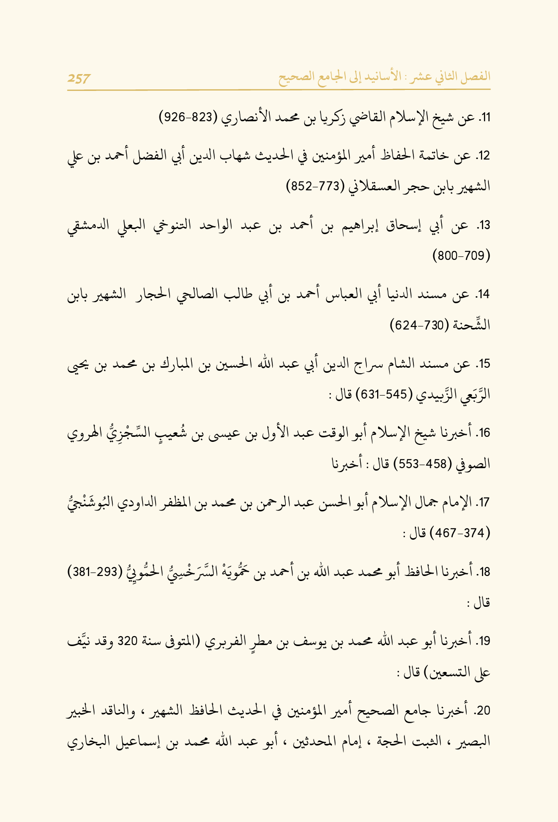 ٢٠. أخبرنا جامع الصحيح أمير المؤمنين في الحديث الحافظ الشهير، والناقد الخبير البصير، الثبت الحجة، إمام المحدثين، أبو عبد الله محمد بن إسماعيل البخاري
