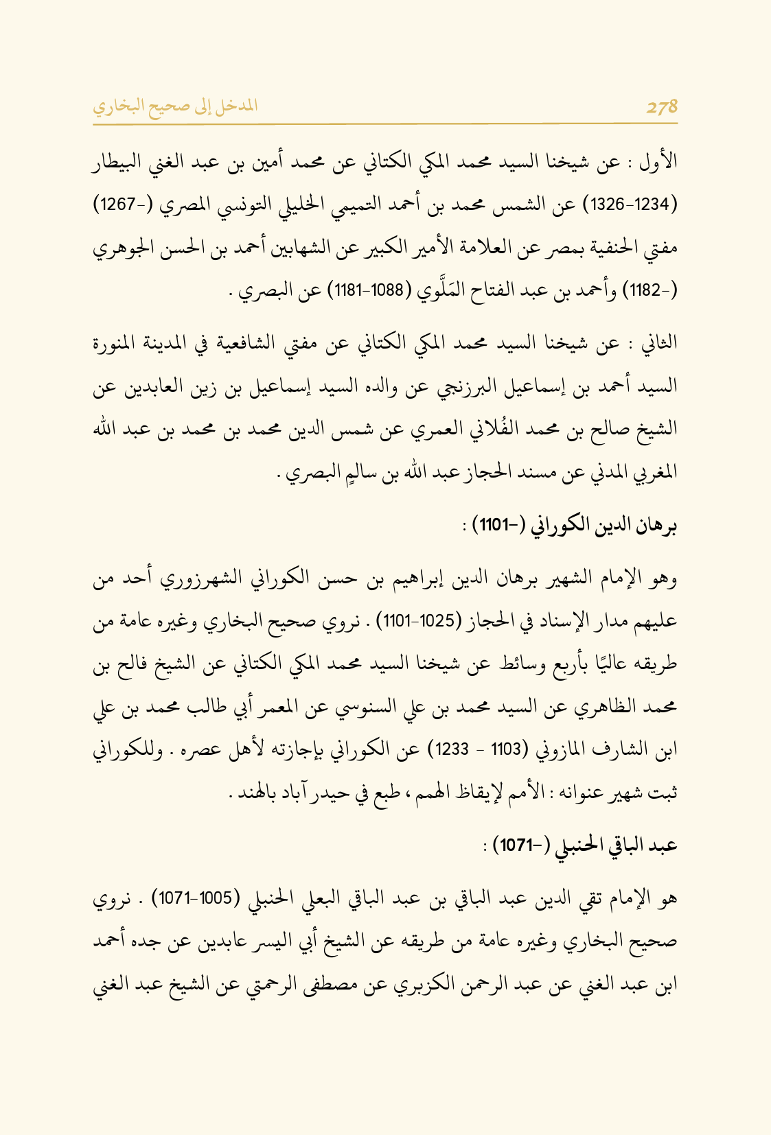 وهو الإمام الشهير برهان الدين إبراهيم بن حسن الكوراني الشهرزوري أحد من عليهم مدار الإسناد في الحجاز (١٠٢٥ - ١١٠١). نروي صحيح البخاري وغيره عامة من طريقه عاليًا بأربع وسائط عن شيخنا السيد محمد المكي الكتاني عن الشيخ فالح بن محمد الظاهري عن السيد محمد بن علي السنوسي عن المعمر أبي طالب محمد بن علي ابن الشارف المازوني (١١٠٣ - ١٢٣٣) عن الكوراني بإجازته لأهل عصره. وللكوراني ثبت شهير عنوانه: الأمم لإيقاظ الهمم، طبع في حيدر آباد بالهند.