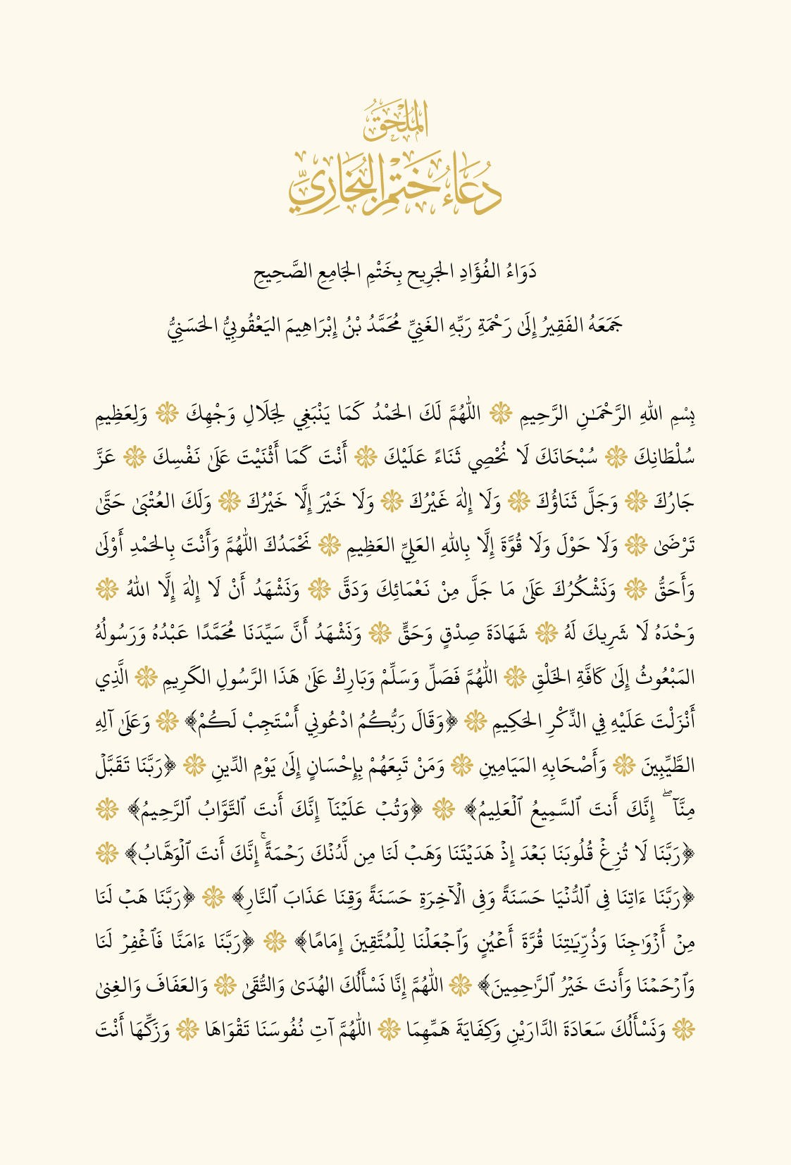 دَوَاءُ الفُؤَادِ الجَرِيح بِخَتْمِ الجَامِعِ الصَّحِيحِ