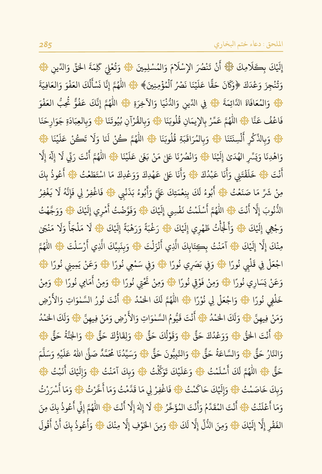 إِلَيْكَ بِكَلَامِكَ أَنْ تَنْصُرَ الإِسْلَامَ وَالمُسْلِمِينَ وَتُعْلِيَ كَلِمَةَ الحَقِّ وَالدِّينِ وَتُنْجِزَ وَعْدَكَ {وَكَانَ حَقًّا عَلَيْنَا نَصْرُ الْمُؤْمِنِينَ} اللهم إِنَّا نَسْأَلُكَ العَفْوَ وَالعَافِيَةَ وَالمُعَافَاةَ الدَّائِمَةَ فِي الدِّينِ وَالدُّنْيَا وَالآخِرَةِ اللهم إِنَّكَ عَفُوٌّ تُحِبُّ العَفْوَ فَاعْفُ عَنَّا اللهم عَمِّرْ بِالإِيمَانِ قُلُوبَنَا وَبِالقُرْآنِ بُيُوتَنَا وَبِالعِبَادَةِ جَوَارِحَنَا وَبِالذِّكْرِ أَلْسِنَتَنَا وَبِالمُرَاقَبَةِ قُلُوبَنَا اللهم كُنْ لَنَا وَلَا تَكُنْ عَلَيْنَا وَاهْدِنَا وَيَسِّرِ الهُدَى إِلَيْنَا وَانْصُرْنَا عَلى مَنْ بَغَى عَلَيْنَا اللهم أَنْتَ رَبِّي لَا إِلهَ إِلَّا أَنْتَ خَلَقْتَنِي وَأَنَا عَبْدُكَ وَأَنَا عَلى عَهْدِكَ وَوَعْدِكَ مَا