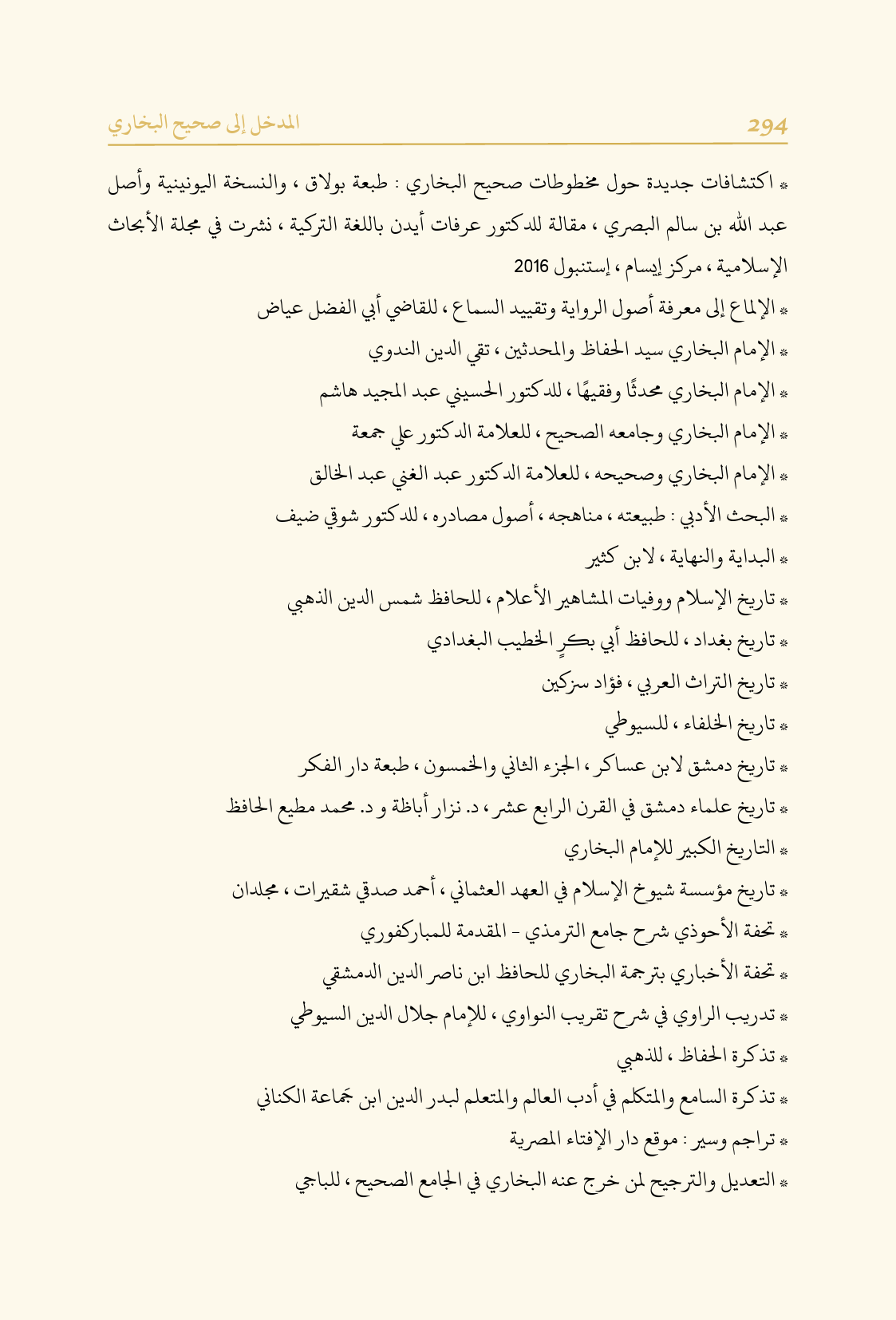 * اكتشافات جديدة حول مخطوطات صحيح البخاري: طبعة بولاق، والنسخة اليونينية وأصل عبد الله بن سالم البصري، مقالة للدكتور عرفات أيدن باللغة التركية، نشرت في مجلة الأبحاث الإسلامية، مركز إيسام، إستنبول ٢٠١٦
