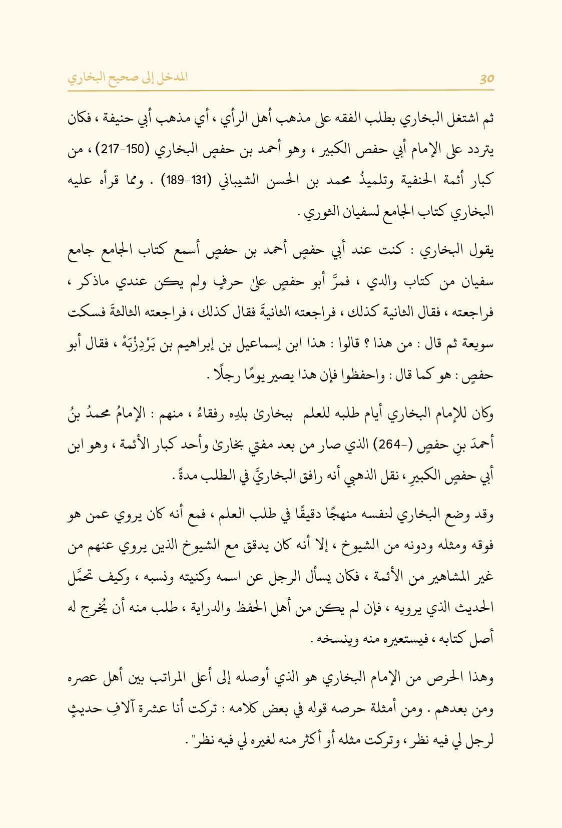 ثم اشتغل البخاري بطلب الفقه على مذهب أهل الرأي، أي مذهب أبي حنيفة، فكان يتردد على الإمام أبي حفص الكبير، وهو أحمد بن حفصٍ البخاري (١٥٠ - ٢١٧).، من كبار أئمة الحنفية وتلميذُ محمد بن الحسن الشيباني (١٣١ - ١٨٩). ومما قرأه عليه البخاري كتاب الجامع لسفيان الثوري.