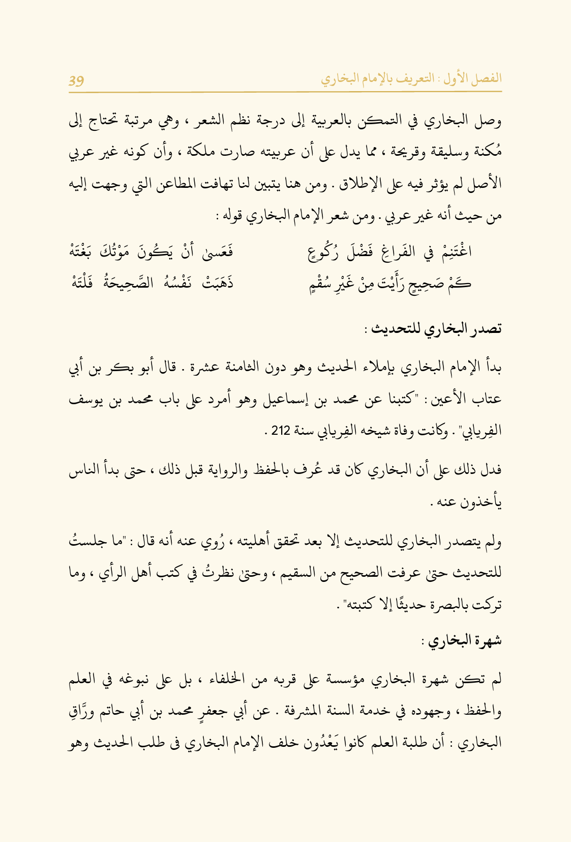 ولم يتصدر البخاري للتحديث إلا بعد تحقق أهليته، رُوي عنه أنه قال: "ما جلستُ للتحديث حتى عرفت الصحيح من السقيم، وحتى نظرتُ في كتب أهل الرأي، وما تركت بالبصرة حديثًا إلا كتبته" ..
