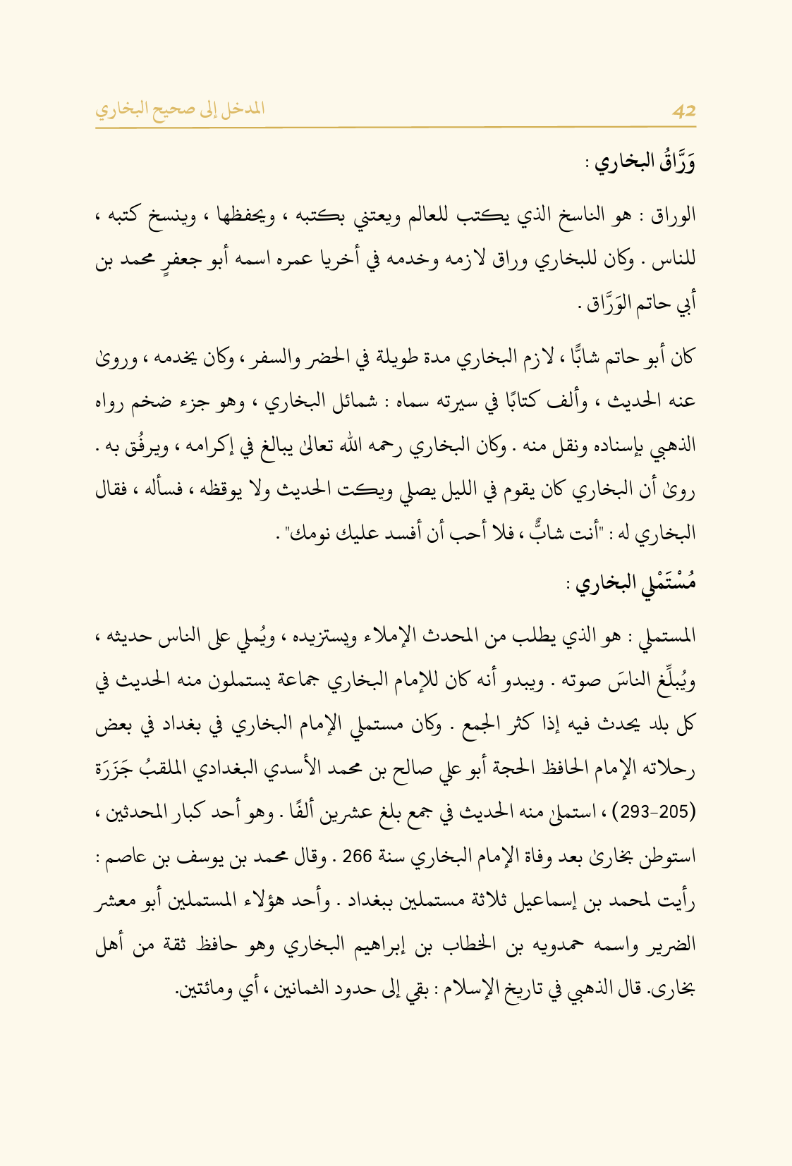 الوراق: هو الناسخ الذي يكتب للعالم ويعتني بكتبه، ويحفظها، وينسخ كتبه، للناس. وكان للبخاري وراق لازمه وخدمه في أخريا عمره اسمه أبو جعفرٍ محمد بن أبي حاتم الوَرَّاق.