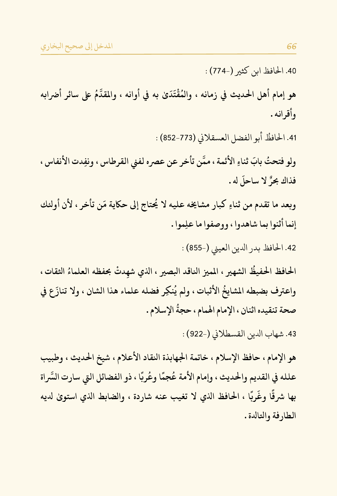 هو الإمام، حافظ الإسلام، خاتمة الجهابذة النقاد الأعلام، شيخ الحديث، وطبيب علله في القديم والحديث، وإمام الأمة عُجمًا وعُربًا، ذو الفضائل التي سارت السَّراة بها شرقًا وغَربًا، الحافظ الذي لا تغيب عنه شاردة، والضابط الذي استوى لديه الطارفة والتالدة.