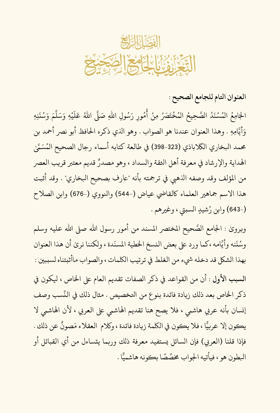 الفصل الرابع: التعريف بالجامع الصحيح