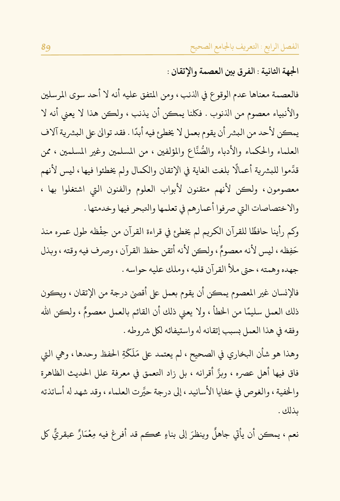 الجهة الثانية: الفرق بين العصمة والإتقان: