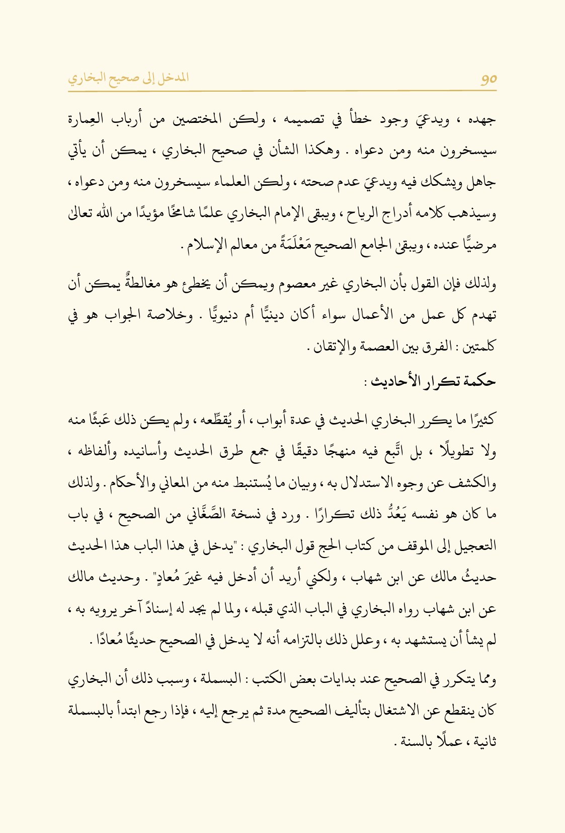 ولذلك فإن القول بأن البخاري غير معصوم ويمكن أن يخطئ هو مغالطةٌ يمكن أن تهدم كل عمل من الأعمال سواء أكان دينيًّا أم دنيويًّا. وخلاصة الجواب هو في كلمتين.: الفرق بين العصمة والإتقان.