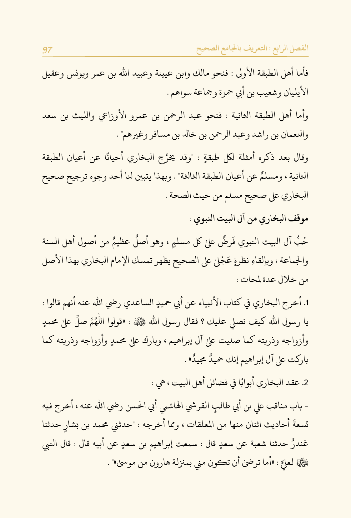 ١. أخرج البخاري في كتاب الأنبياء عن أبي حميدٍ الساعدي رضي الله عنه أنهم قالوا: يا رسول الله كيف نصلي عليك؟ فقال رسول الله - صلى الله عليه وسلم -: «قولوا اللهم صلِّ على محمدٍ وأزواجه وذريته كما صليت على آل إبراهيم، وبارك على محمدٍ وأزواجه وذريته كما باركت على آل إبراهيم إنك حميدٌ مجيدٌ».