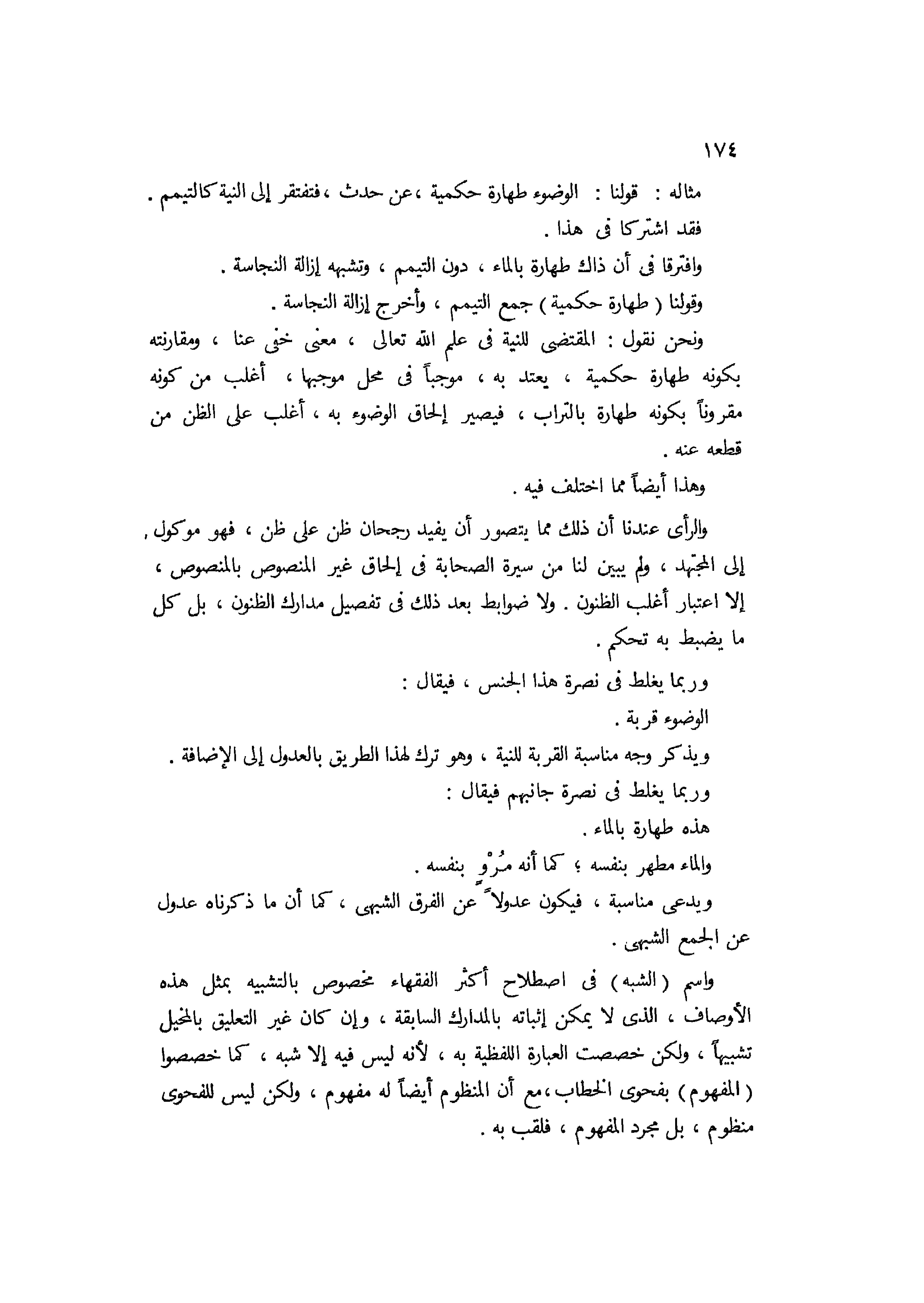وربما يغلط في نصرة جانبهم فيقال: هذه طهارة بالماء والماء مطهر بنفسه، كما أنه مروي بنفسه، ويدعى مناسبة فيكون عدولا عن الفرق الشبهي، كما أن ما ذكرناه عدول عن الجمع الشبهي.