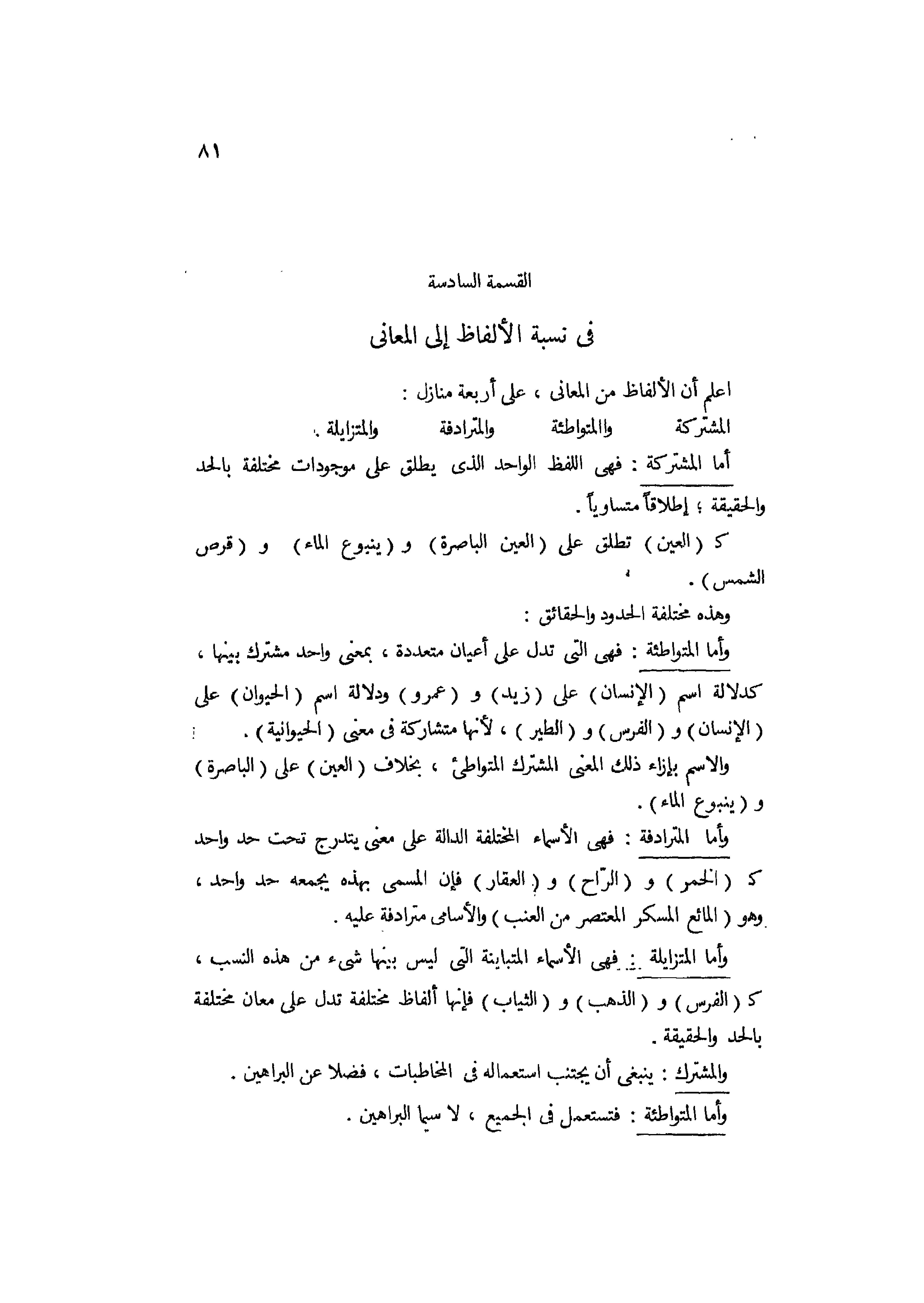 القسم السادسة في نسبة الألفاظ إلى المعاني