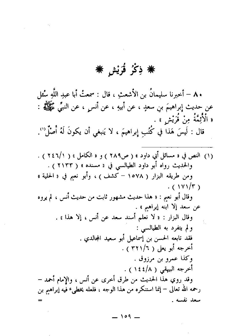 80 - أَخْبَرَنَا سُلَيْمَانُ بْنُ الأَشْعَثِ، قَالَ: سَمِعْتُ أَبَا عَبْدِ اللَّهِ سُئِلَ عَنْ حَدِيثِ إِبْرَاهِيمَ بْنِ سَعْدٍ، عَنْ أَبِيهِ، عَنْ أَنَسٍ، عَنِ النَّبِيِّ (صَلَّى اللَّهُ عَلَيْهِ وَسَلَّمَ): "الأَئِمَّةُ مِنْ قُرَيْشٍ".