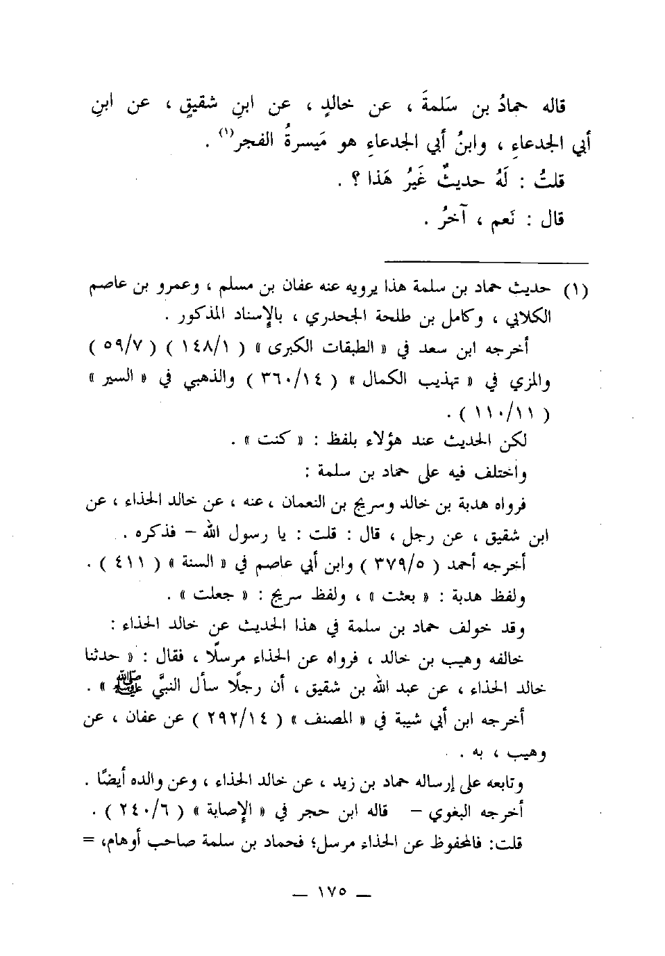 قَالَهُ حَمَّادُ بْنُ سَلَمَةَ، عَنْ خَالِدٍ، عَنِ ابْنِ شَقِيقٍ، عَنِ ابْنِ أَبِي الْجَدْعَاءِ، وَابْنِ أَبِي الْجَدْعَاءِ هُوَ مَيْسَرَةَ الْفَجْرُ.