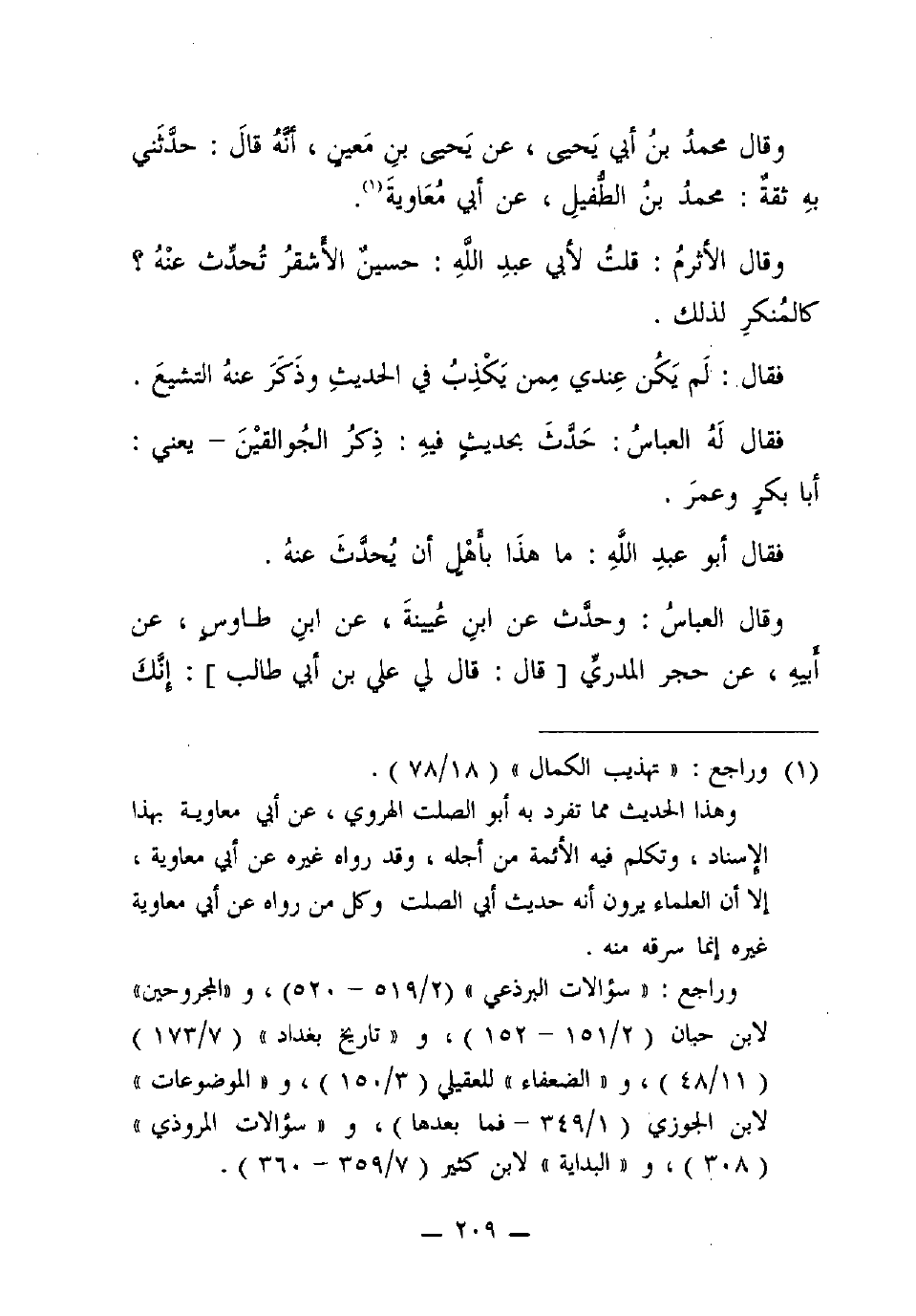 وَقَالَ مُحَمَّدُ بْنُ أَبِي يَحْيَى، عَنْ يَحْيَى بْنِ مَعِينٍ، أَنَّهُ قَالَ: حَدَّثَنِي بِهِ ثِقَةٌ: مُحَمَّدُ بْنُ الطُّفَيْلِ، عَنْ أَبِي مُعَاوِيَةَ.