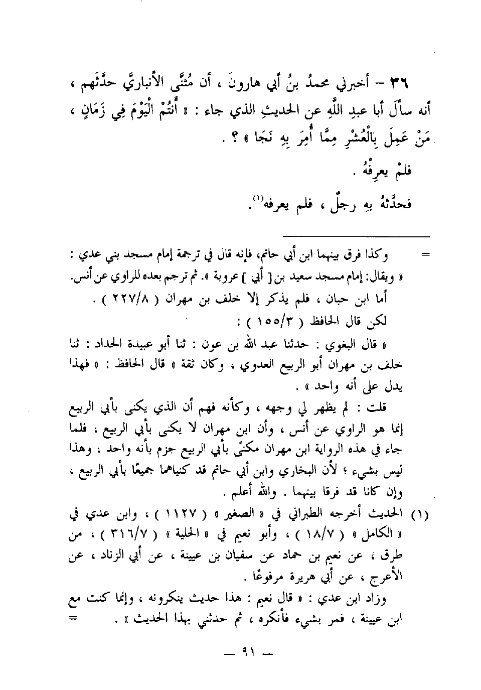 36 - أخبرني مُحَمَّدُ بْنُ أَبِي هَارُونَ، أَنَّ مُثَنًّى الأَنْبَارِيَّ حدثهم، أنه سأل أبا عبد الله عن الحديث الذي جاء: "أنتم الَيْوَمَ فِي زَمَانٍ، مِنْ عَمِلَ بِالْعَشْرِ مِمَّا أُمر به نجا"؟.