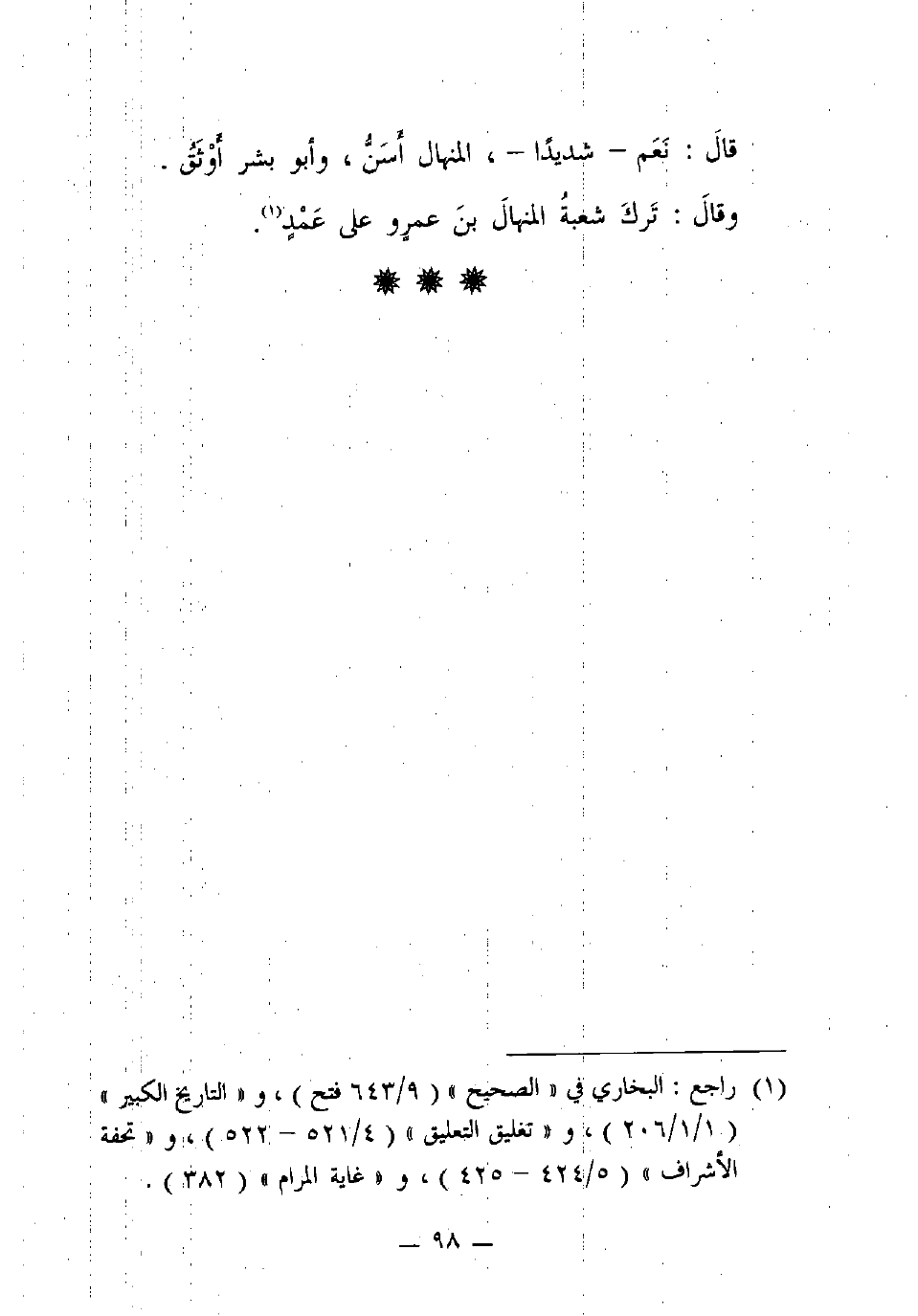 وَقَالَ: تَرَكَ شُعْبَةُ الْمِنْهَالَ بن عمرو على عمد.