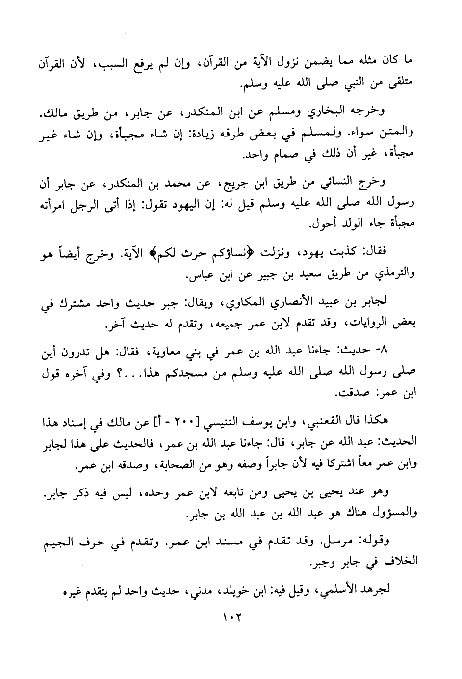 وخرجه البخاري ومسلم عن ابن المنكدر، عن جابر، من طريق مالك والمتن سواء ولمسلم في بعض طرقه زيادة إن شاء مجبأة، وإن شاء غير مجبأة، غير أن ذلك في صمام واحد.