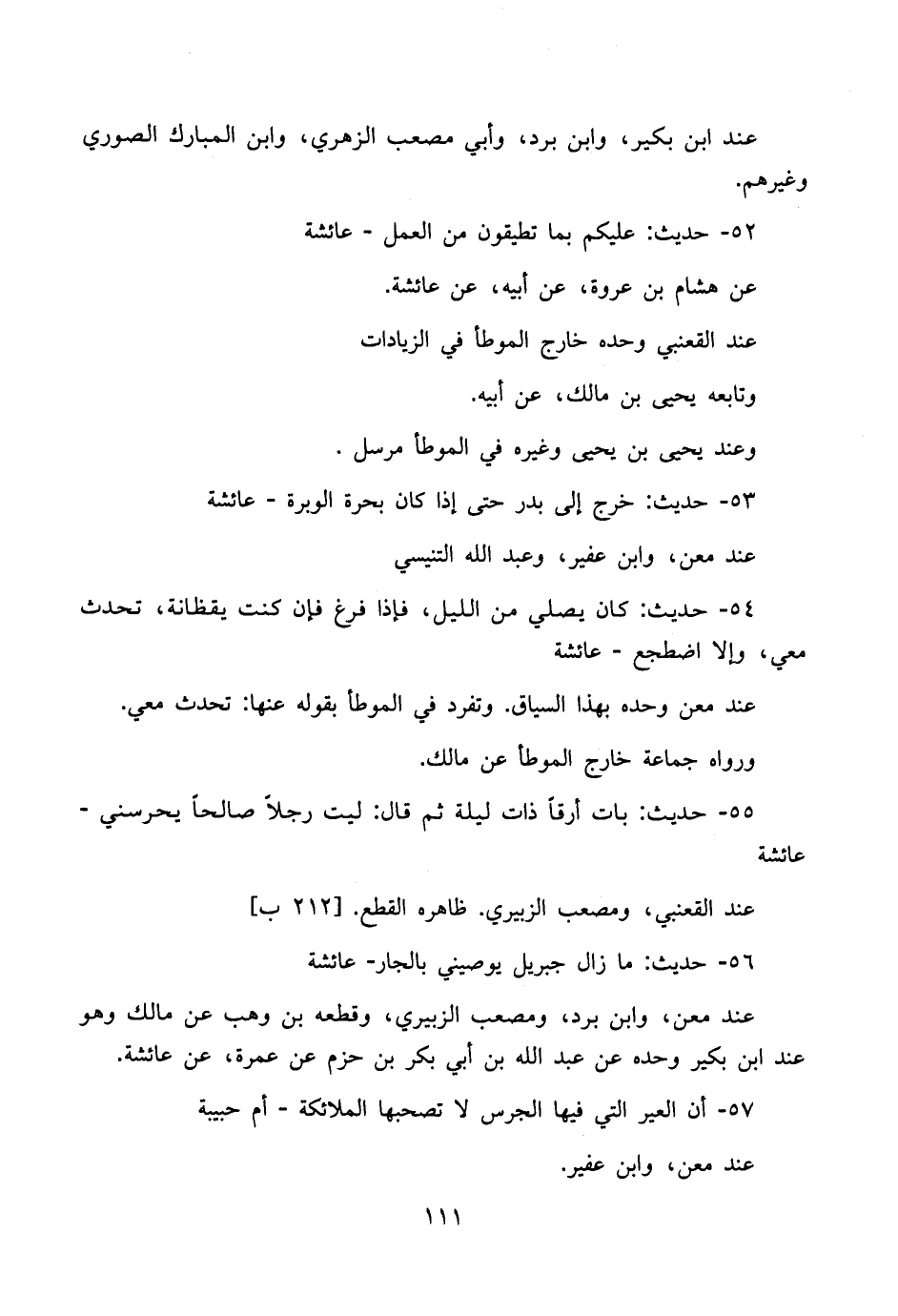 عند معن، وابن برد، ومصعب الزبيري، وقطعه بن وهب عن مالك وهو عند ابن بكير وحده عن عبد الله بن أبي بكر بن حزم عن عمرة، عن عائشة
